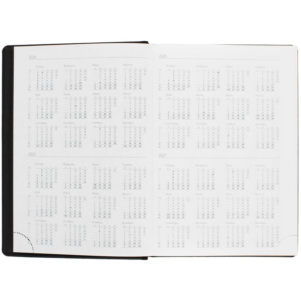 Ежедневник с карманом шириной 10 см из резинки, в котором удобно разместить мобильный телефон или визитки для переговоров.