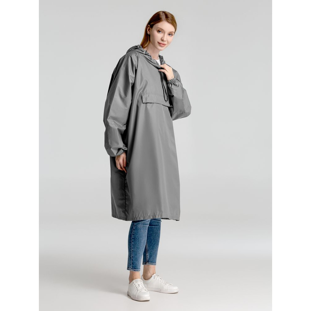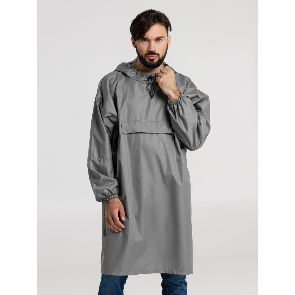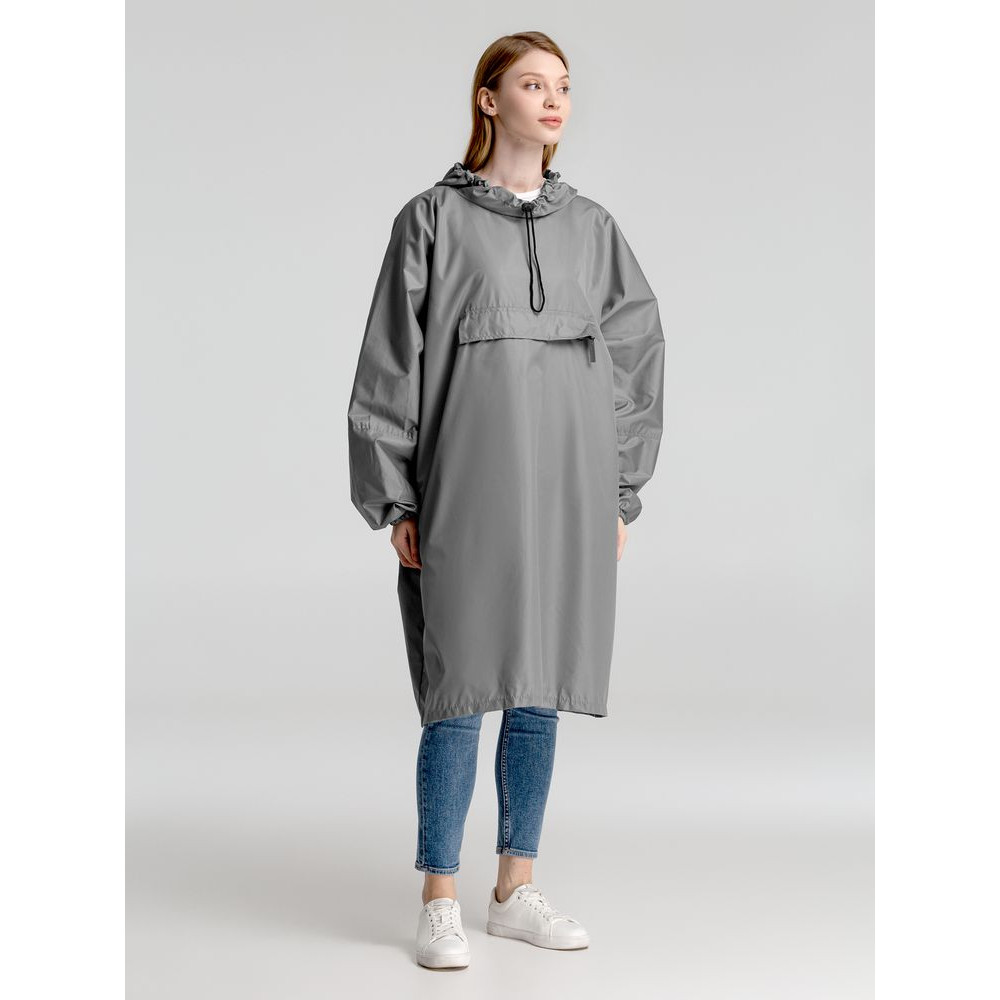 Дождевик-анорак с капюшоном и карманом на молнии спереди. Выполнен из ткани дюспо с матовой поверхностью — легкой, мягкой на ощупь, но устойчивой к повреждениям. Она не шелестит и практически не мнется. Благодаря пропитке дюспо обладает отличными водоотталкивающими и ветрозащитными свойствами.