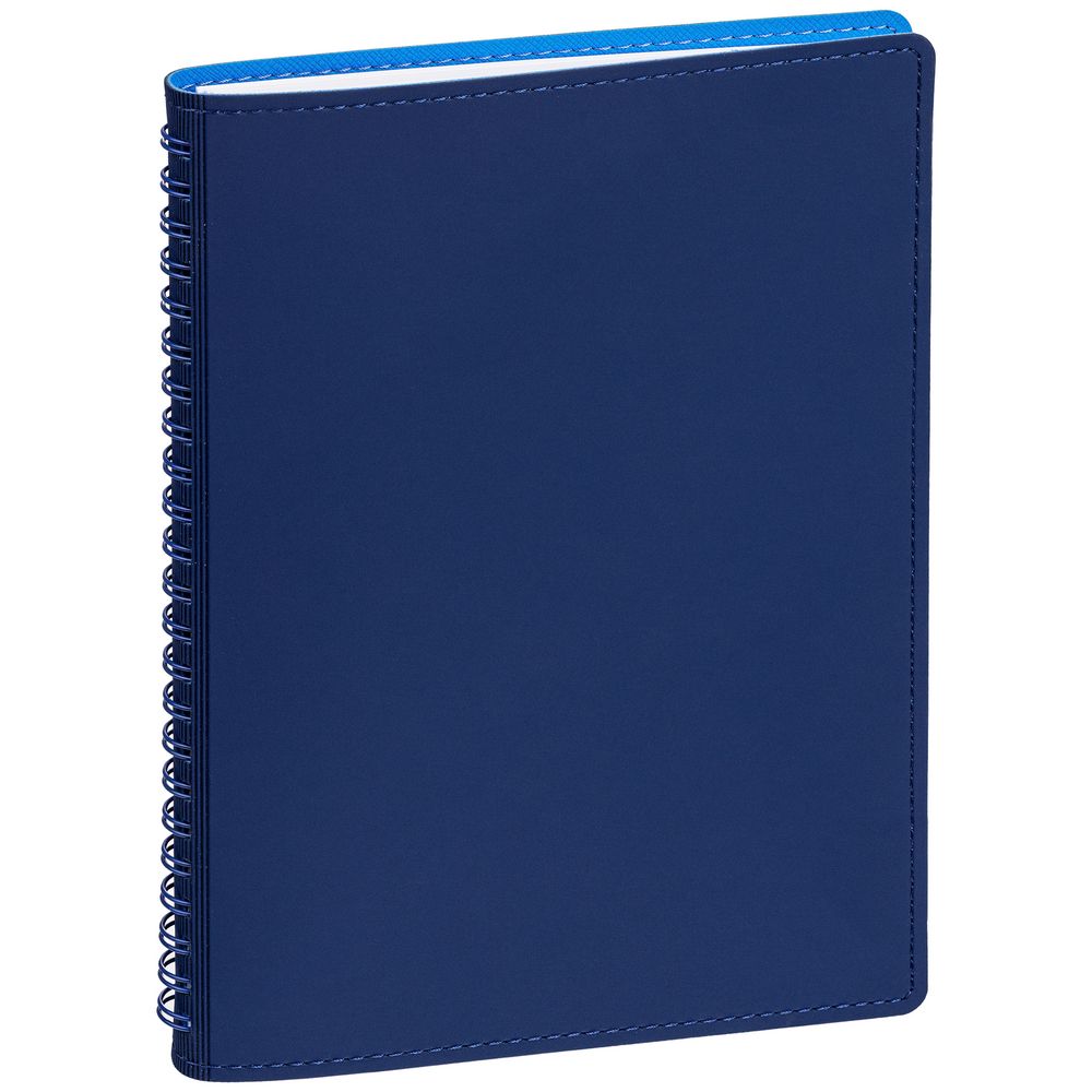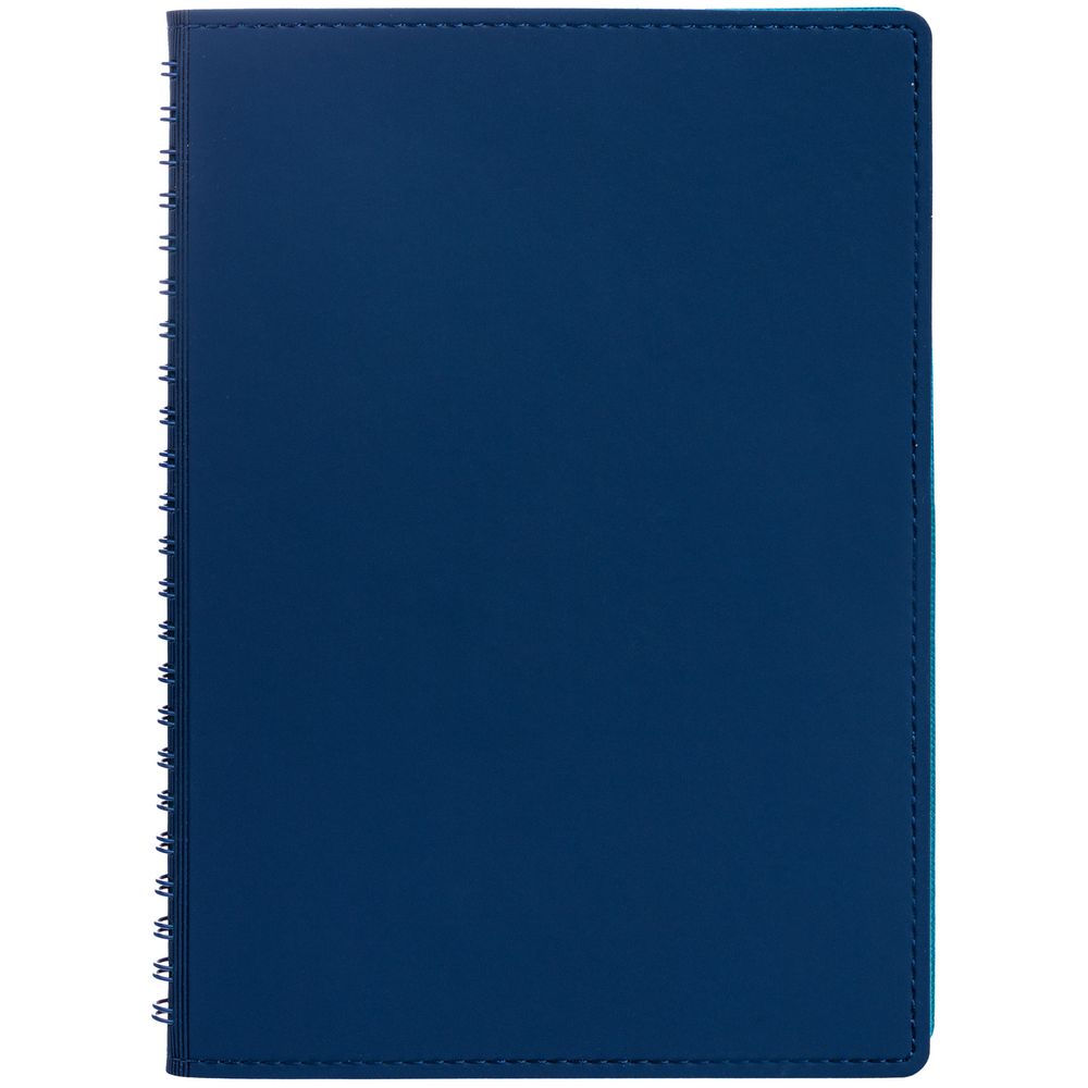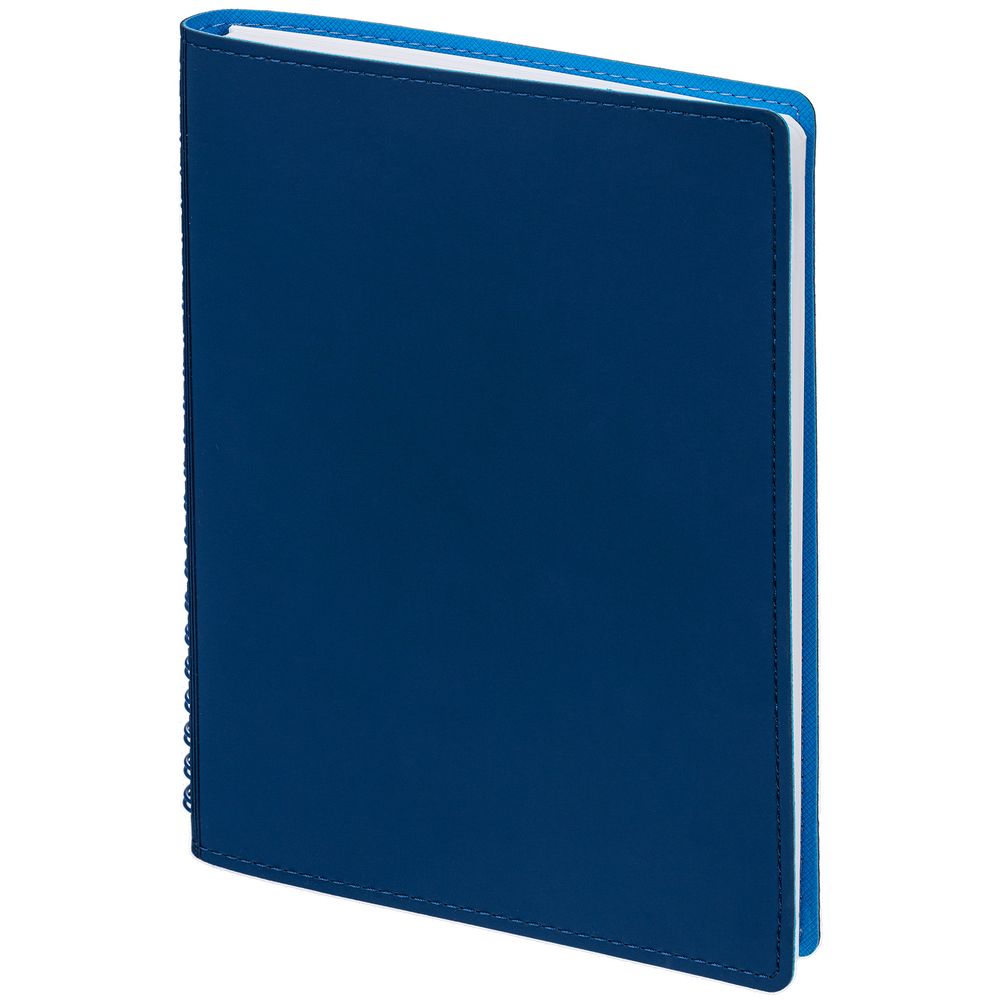 Ежедневник с гибкой обложкой, выполнен из материалов Soft Touch, синий и Nice Touch, голубой.
