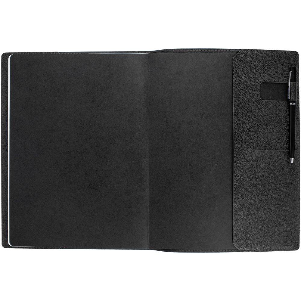 Ежедневник в суперобложке выполнен из материала La Fite, черный АА, дополнен ляссе и капталом черного цвета.