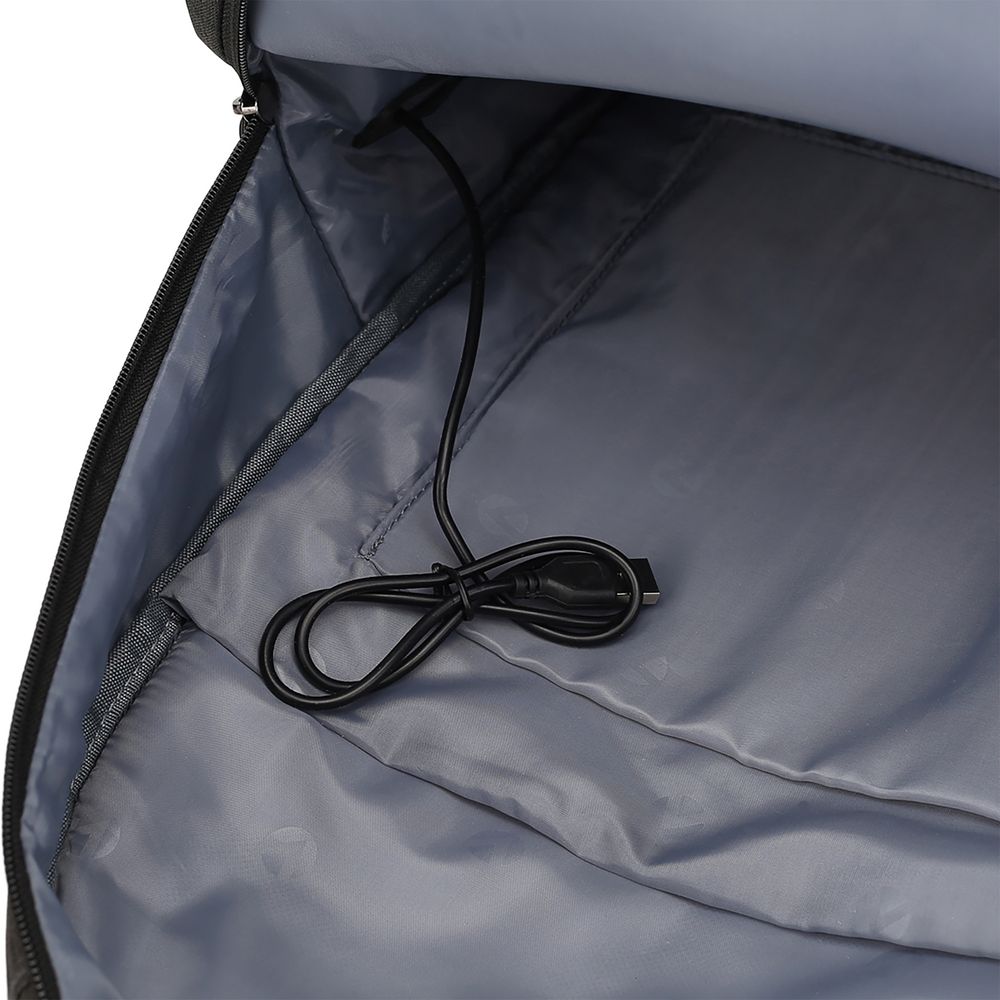 - Внешний USB-порт для зарядки гаджетов (внутри рюкзака — провод для подключения)