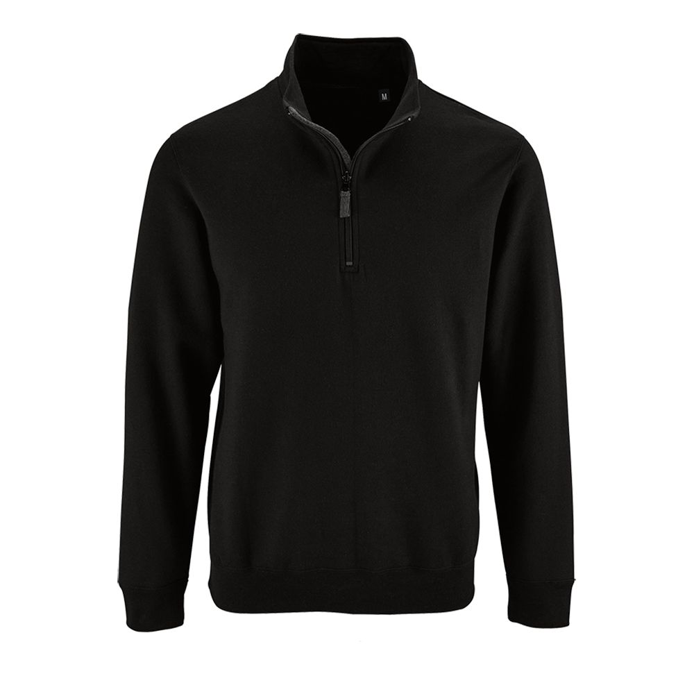 Толстовка с воротником-стойкой на молнии. Лейбл производителя в боковом шве изнутри, в шве горловины - только бирка с размером, что позволяет вам нанести свой логотип.