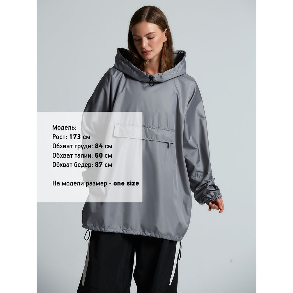 Дождевик-анорак Hard Work, укороченный, серый, единый размер 1890 ₽