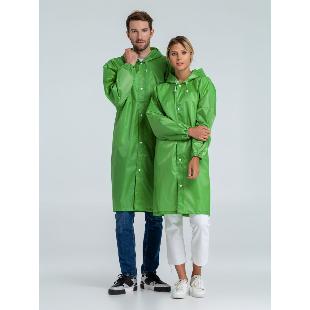 Плащ-дождевик из ткани оксфорд на кнопках с капюшоном.