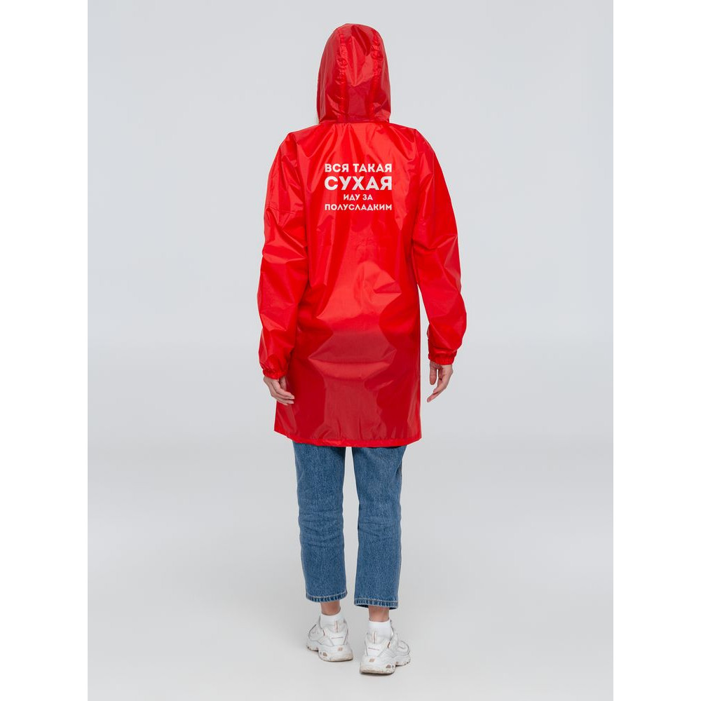 Плащ-дождевик из ткани таффета на молнии с капюшоном. Складывается в мешочек — удобно брать с собой.