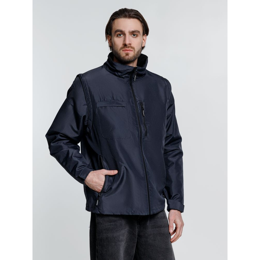 Куртка-трансформер, которая превращается в утепленный жилет. Выполнена из ткани оксфорд с водоотталкивающим покрытием. Модель унисекс.