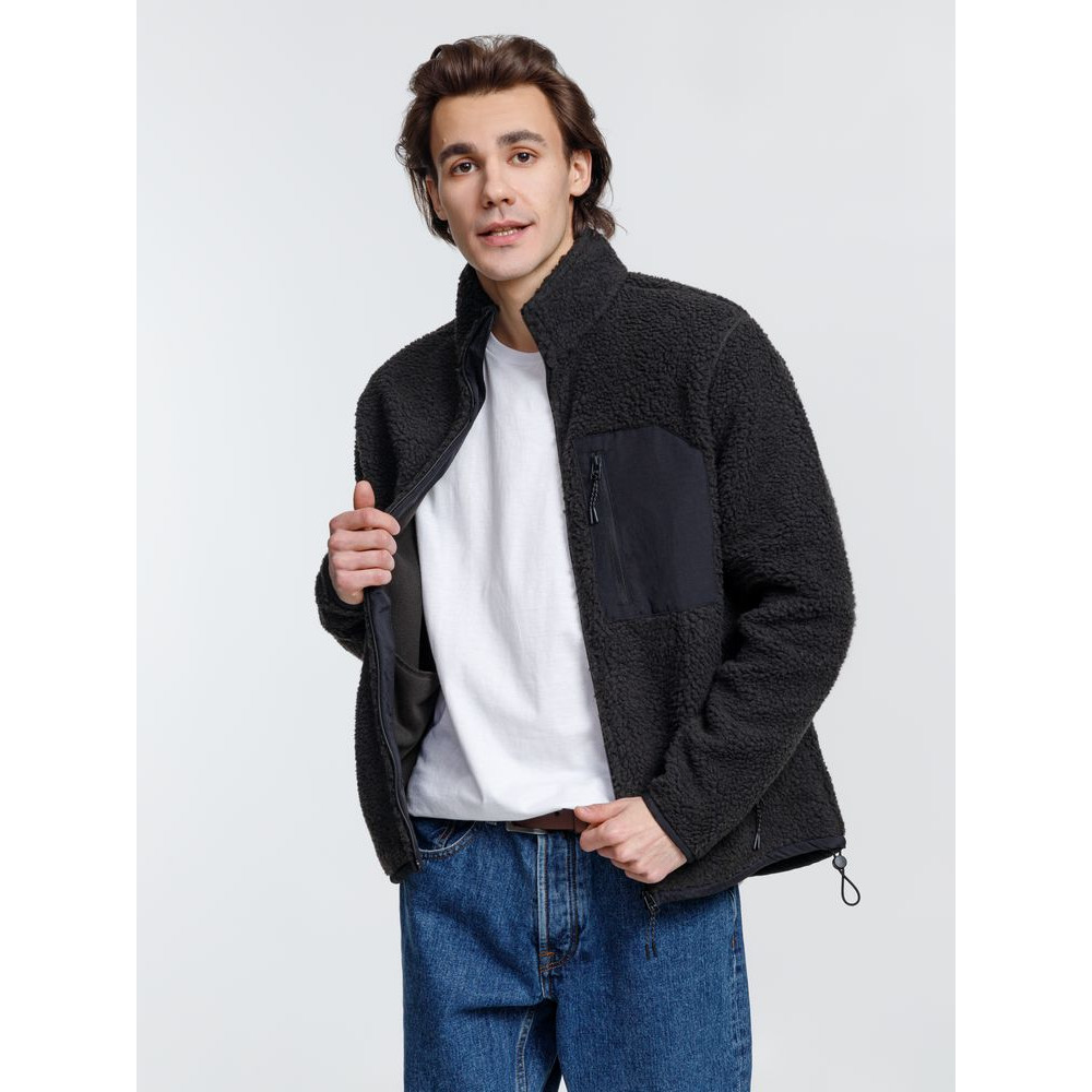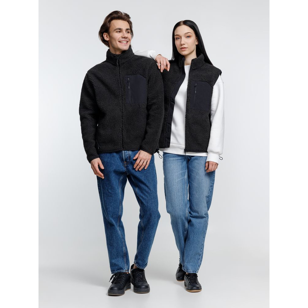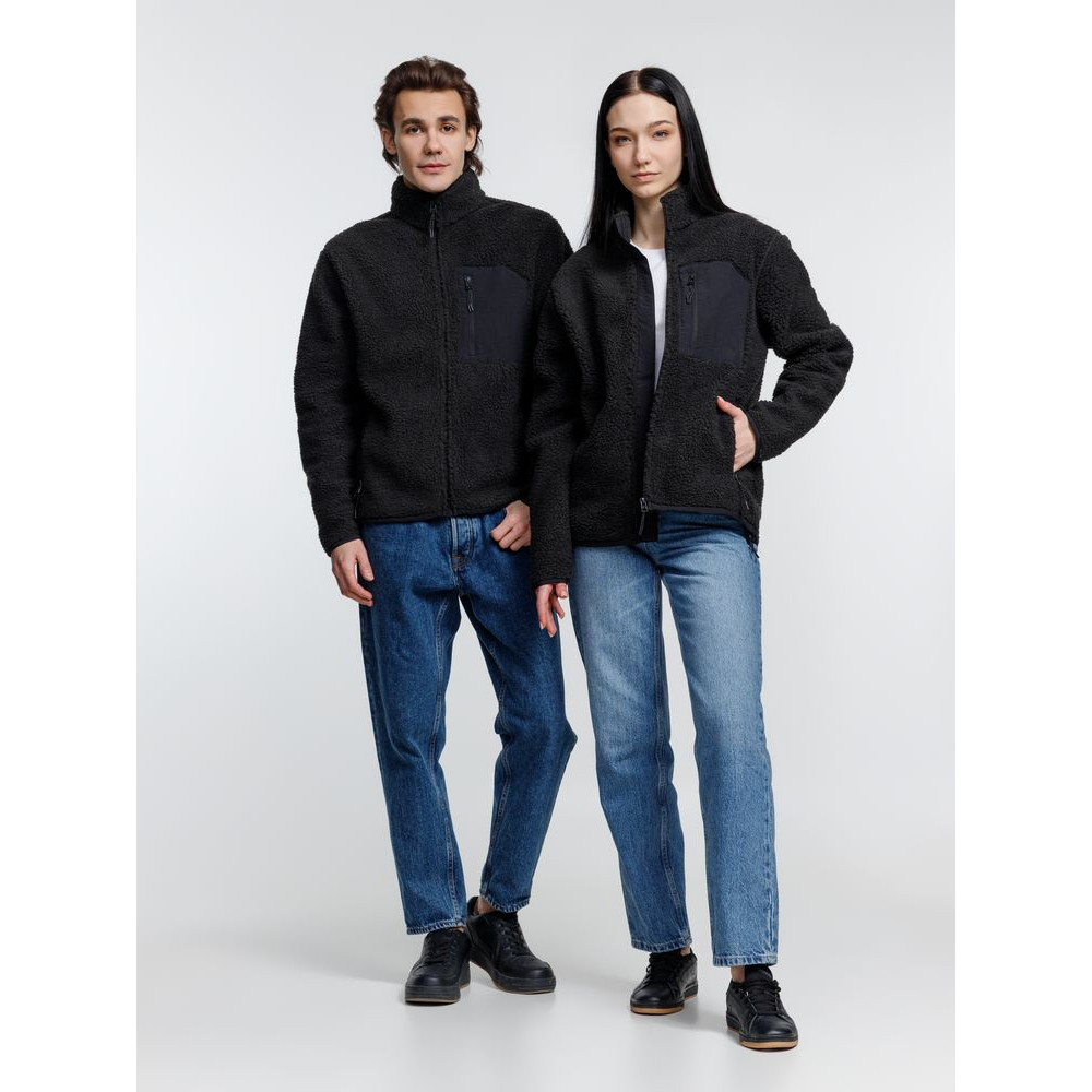 Куртка унисекс из фактурной искусственной шерпы с гладкой отделкой из таслана.
