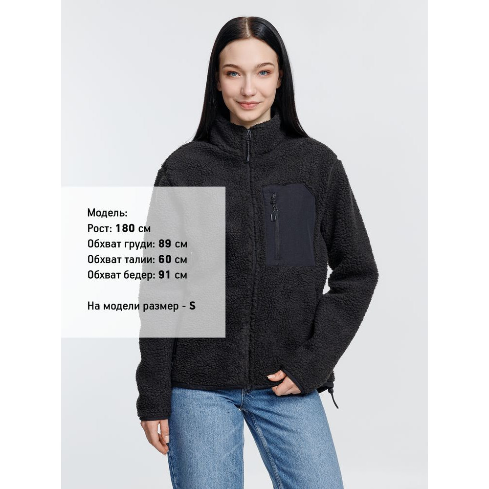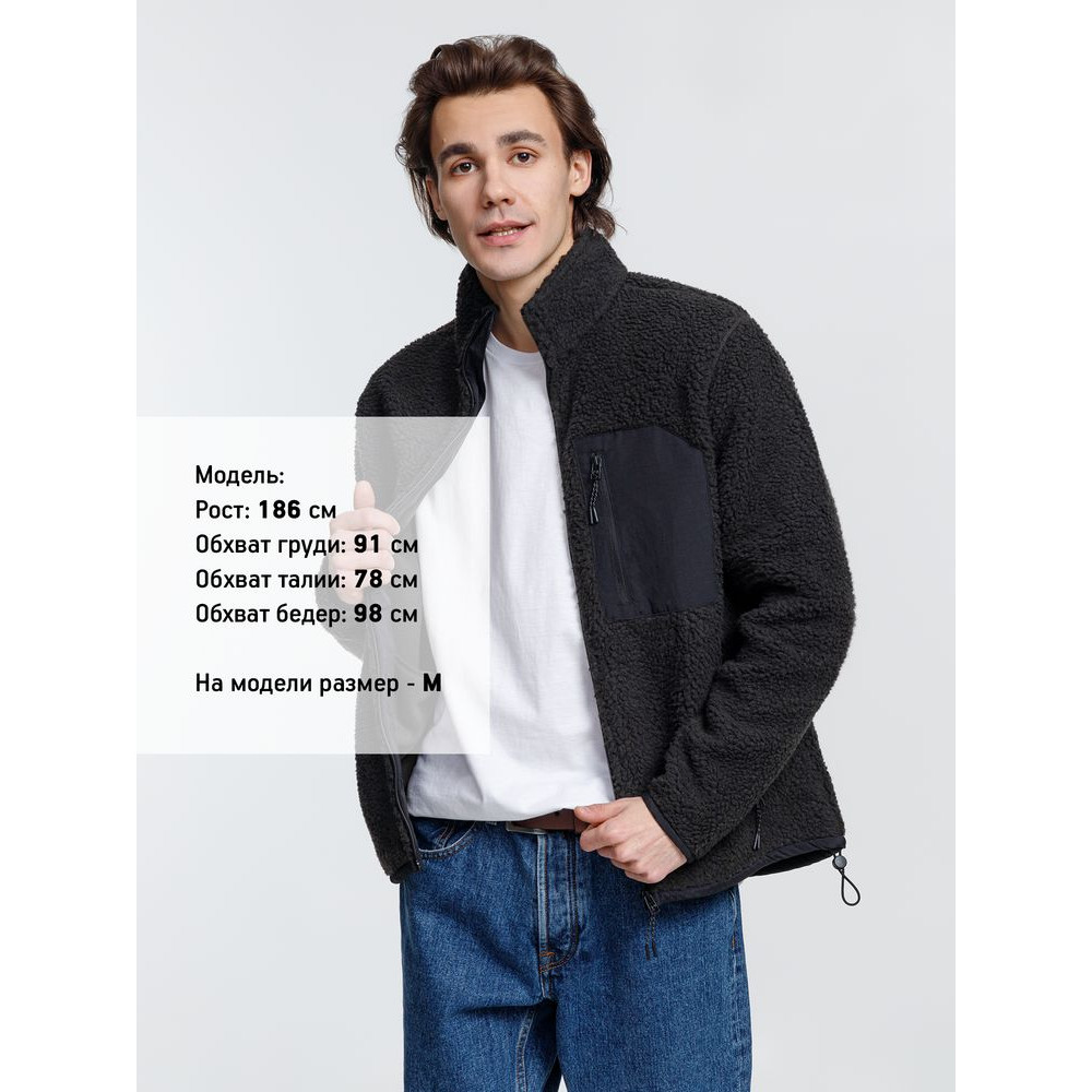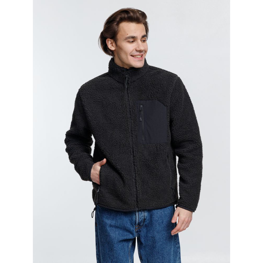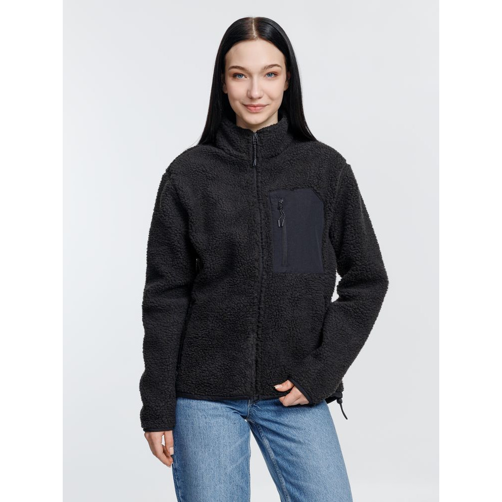 Куртка унисекс из фактурной искусственной шерпы с гладкой отделкой из таслана.