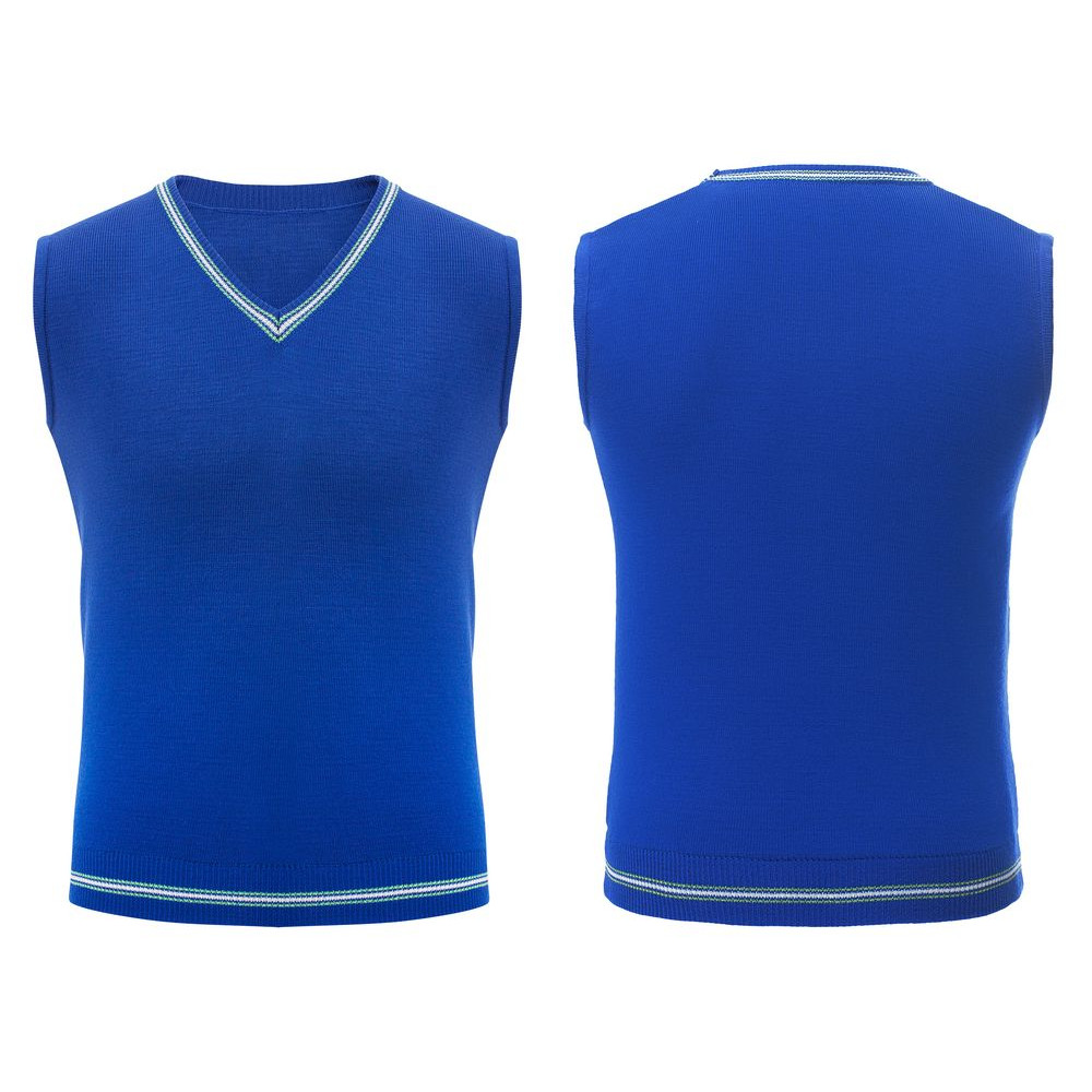 Жилет с вывязанным логотипом и индивидуальным рисунком в фирменной цветовой гамме.