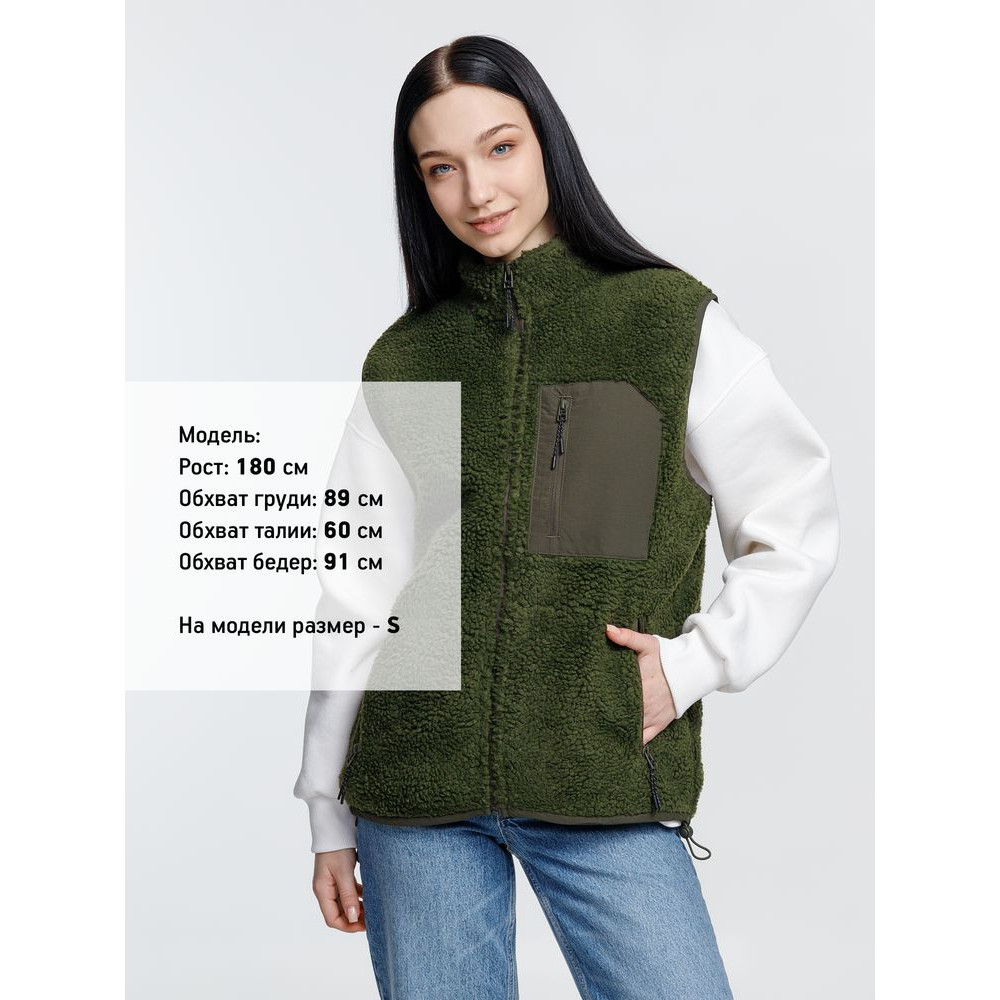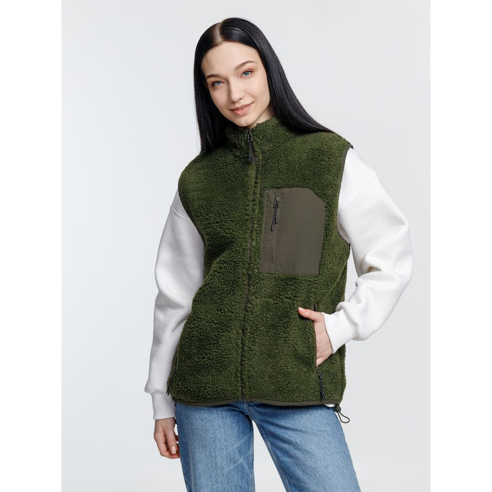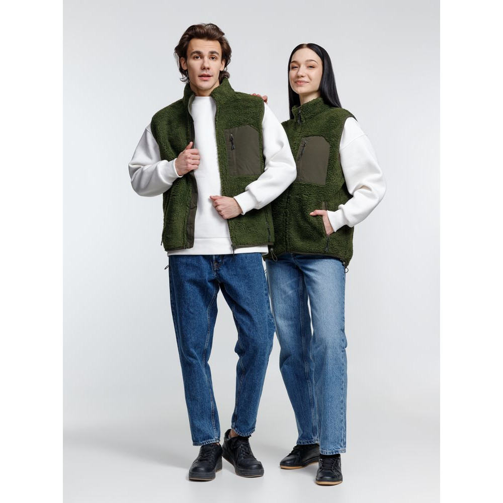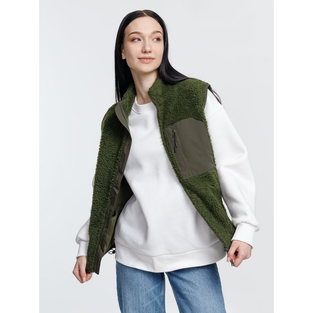 Жилет унисекс из фактурной искусственной шерпы с гладкой отделкой из таслана.