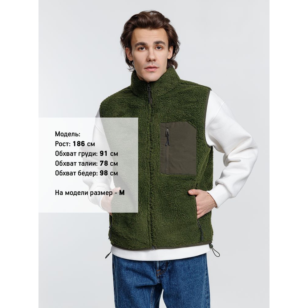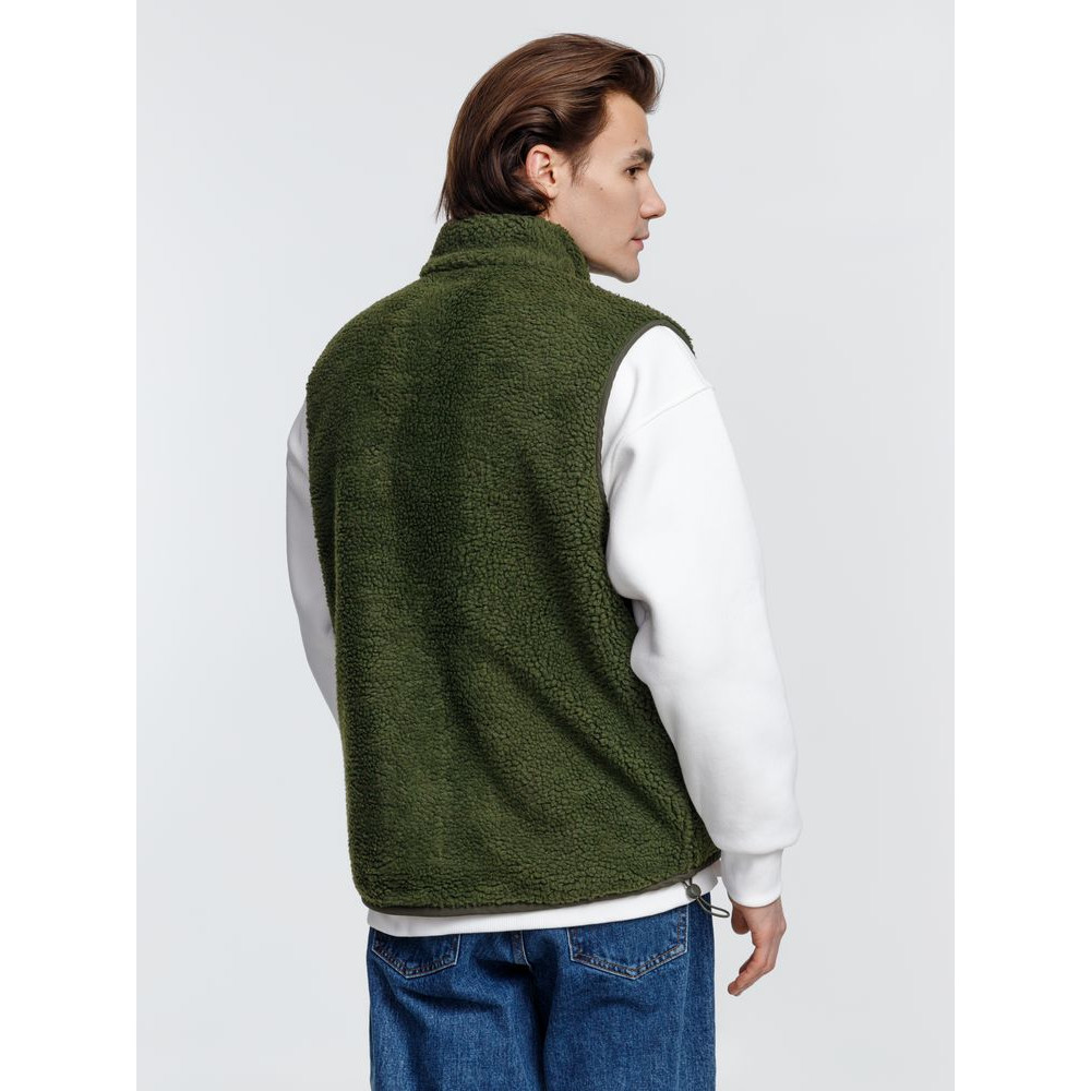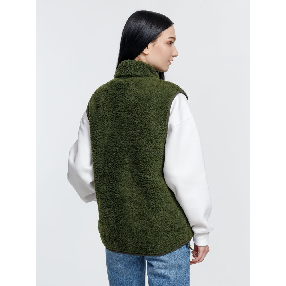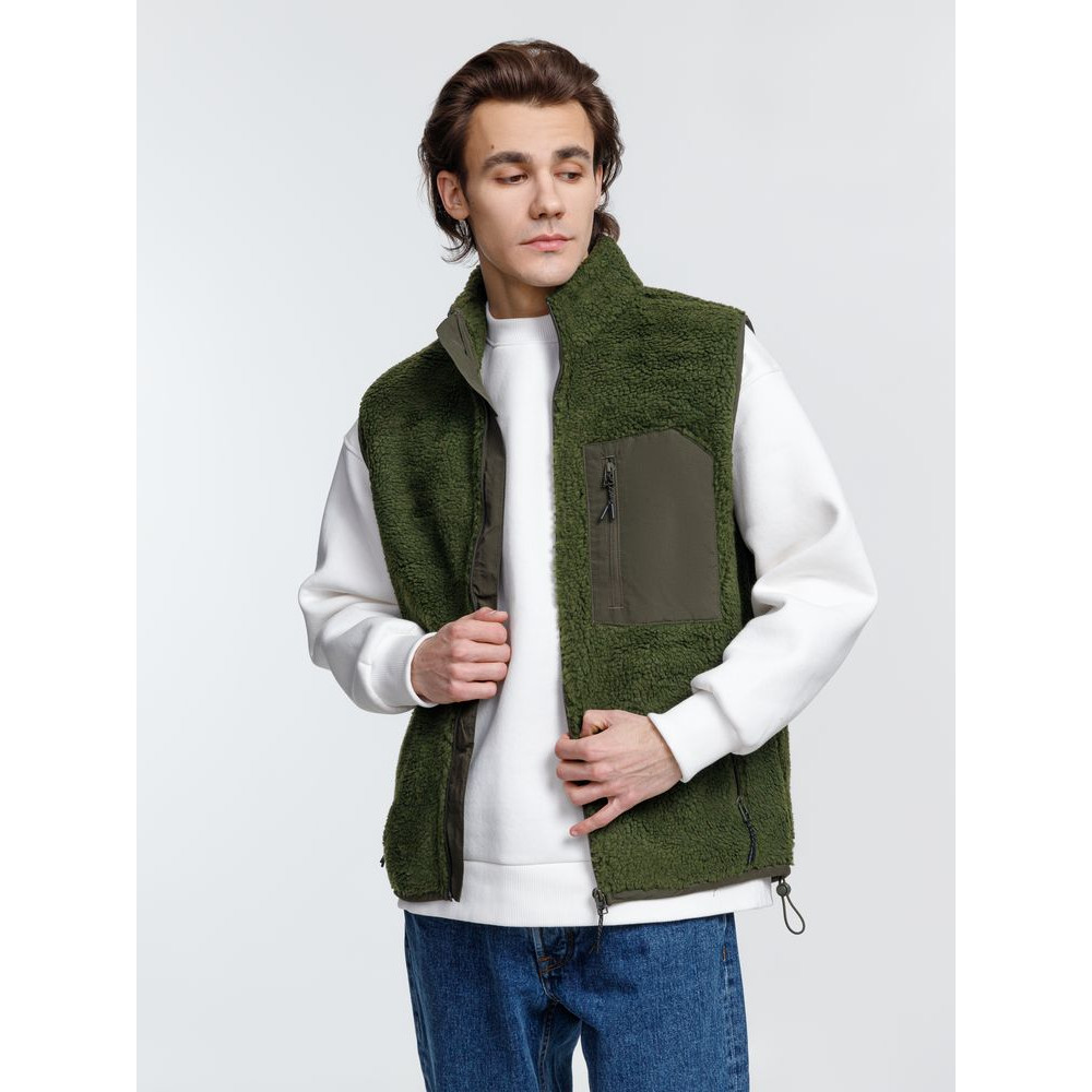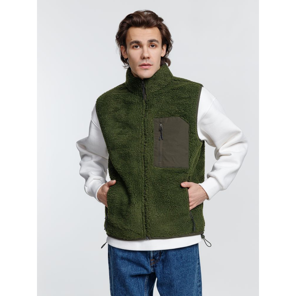 Жилет унисекс из фактурной искусственной шерпы с гладкой отделкой из таслана.