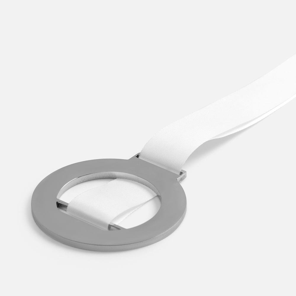 Динамичный дизайн медали Finisher в узнаваемом спортивном стиле подчеркнет упорство и несгибаемый характер получателя награды. Нержавеющая сталь с зеркальной полировкой придает медали элегантный и сдержанный вид, а широкая перемычка для ленты обеспечивает удобство крепления.