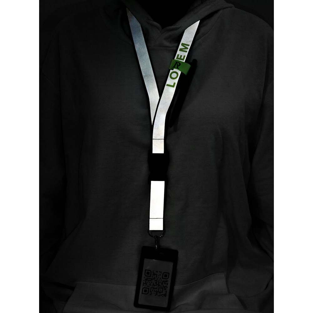 Лента для бейджа или пропуска с карабином и межъярусным замком. Такой замок позволит быстро отстегнуть часть ленты, чтобы приложить интерактивный бейдж или пропуск к считывателю, не снимая ленту через голову.