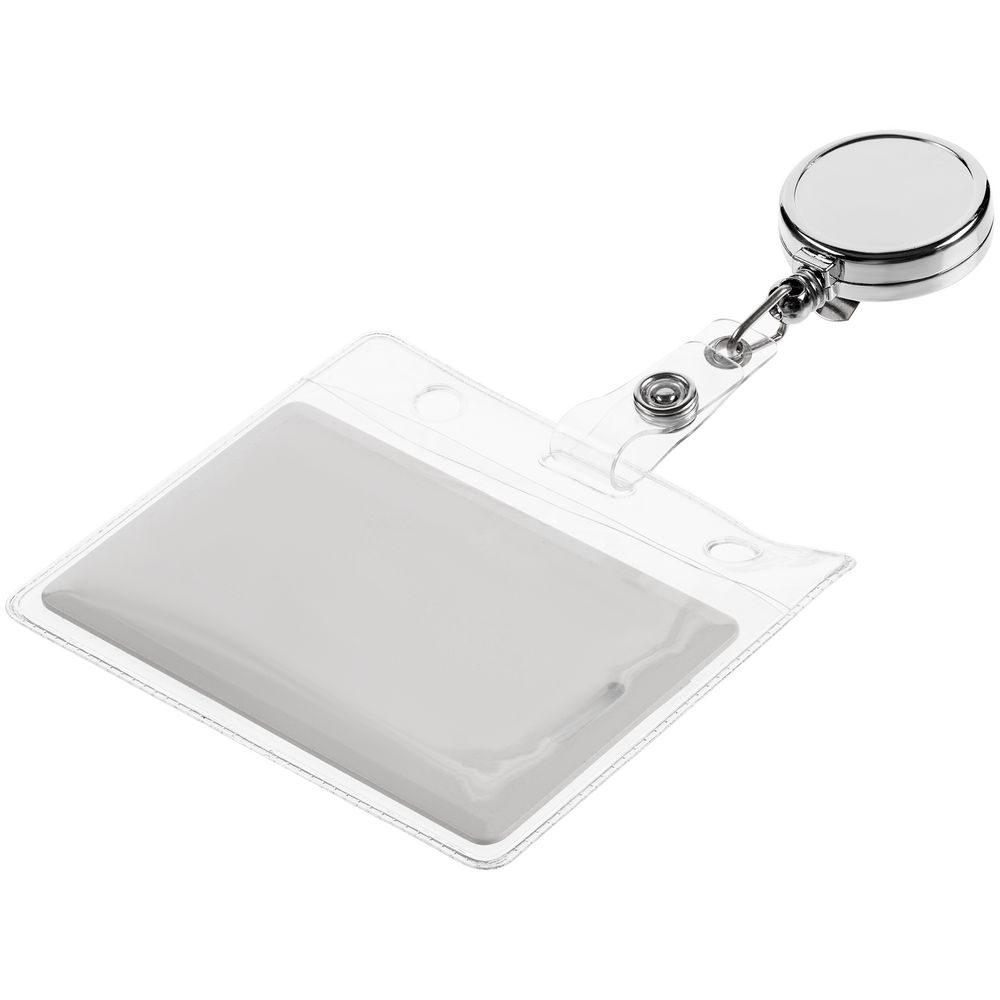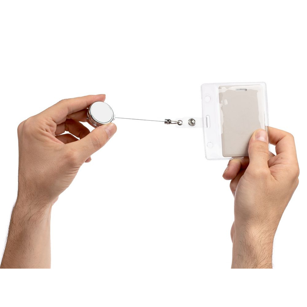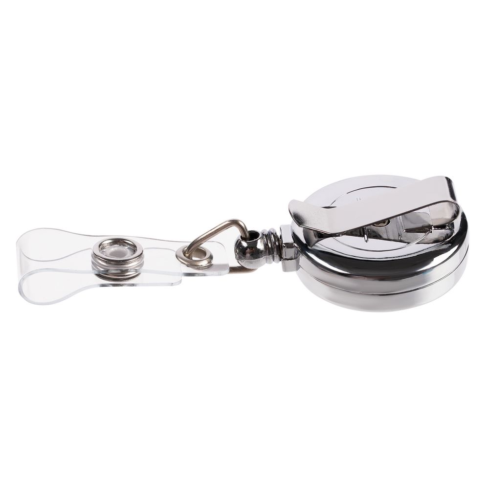 Ретрактор крепится к одежде, а с другой стороны можно поместить бейдж, визитку или магнитную карту. В корпусе спрятан сворачивающийся шнур, который позволяет при необходимости демонстрировать содержимое держателя, не снимая его.