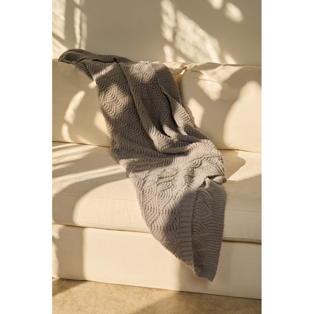 Изысканный плед с узором из закругленных ромбов станет настоящим украшением пространства. Воздушный, словно полупрозрачный, узор напоминает морские ракушки, навевая мысли о приятном курортном отдыхе и полной безмятежности.