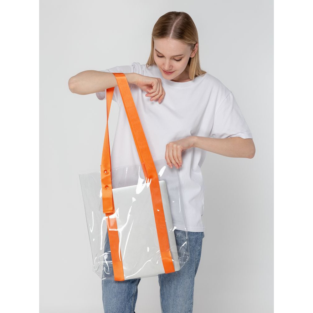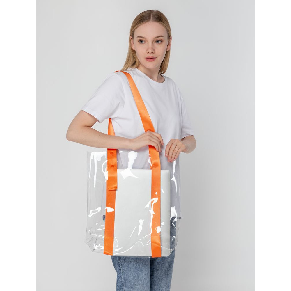 Прозрачные сумки никогда не выйдут из моды. А цветные ручки легко впишутся в брендбук и точно передадут настроение, которое хотелось бы транслировать.