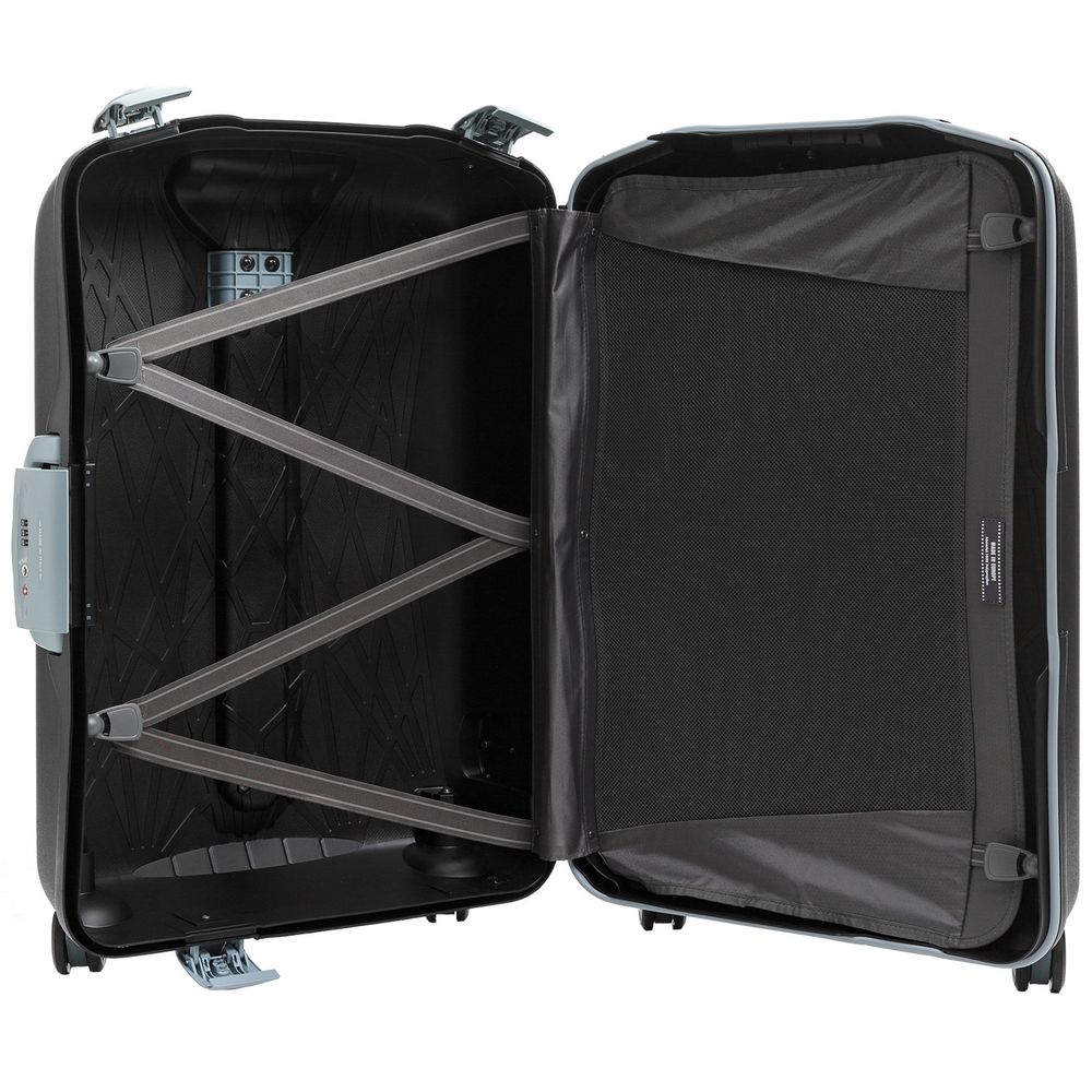 • Чемодан с 2 отделениями: одно из них с фиксирующими ремнями, второе — с съемной перегородкой для крепления багажа