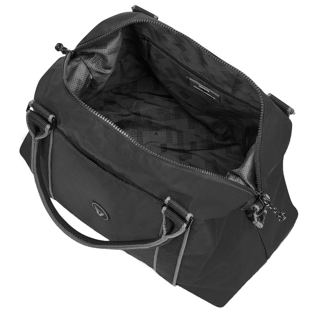 Съемный регулируемый ремень с накладкой и две подъемных ручки позволяют с комфортом носить сумку как на плече, так и в руках.