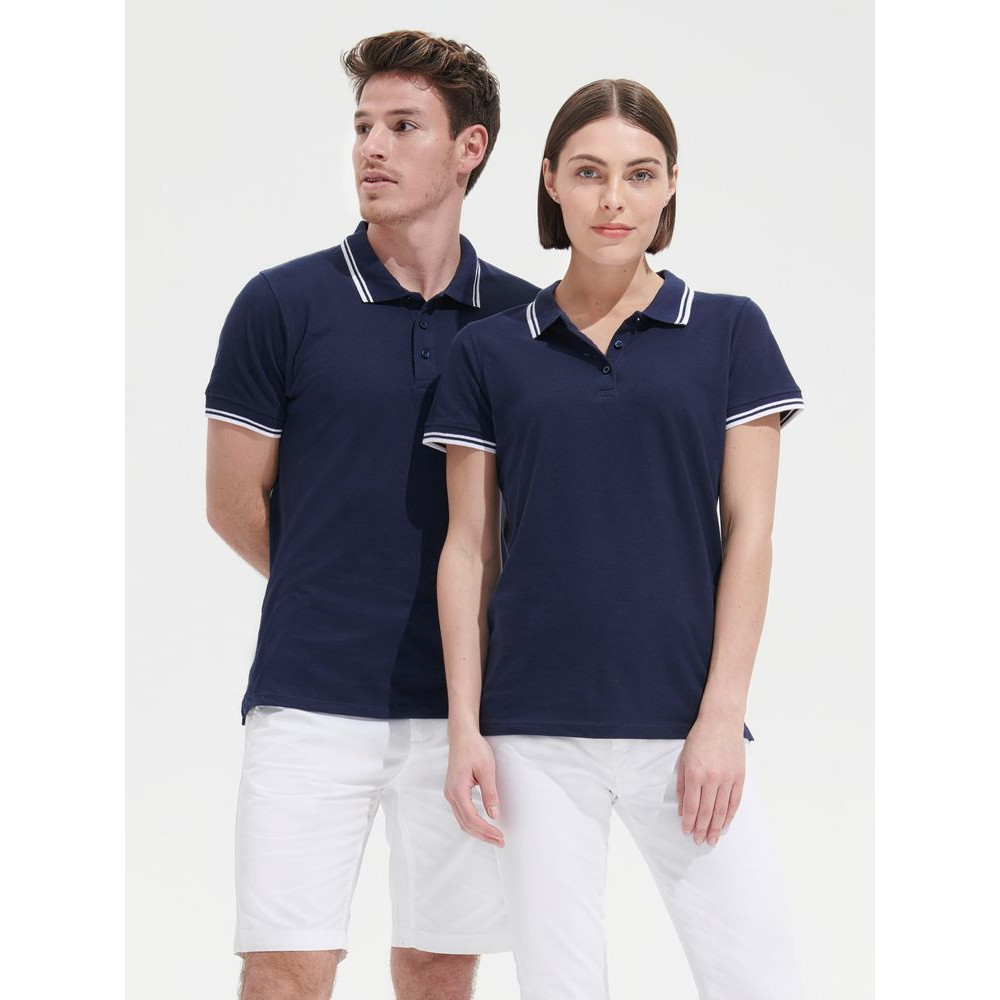 Рубашка поло мужская Pasadena Men 200 с контрастной отделкой, темно-синяя с белым