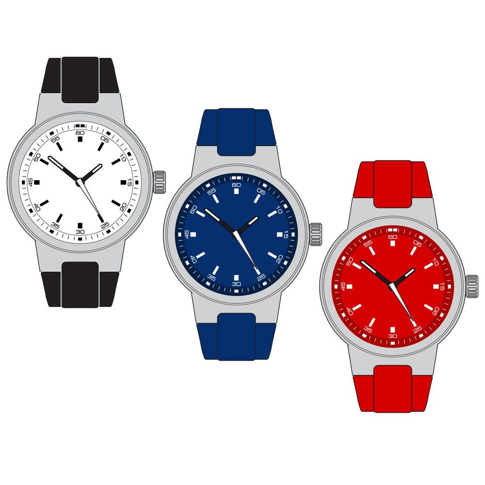 - Цвет циферблата — черный, белый, синий, красный или оранжевый.