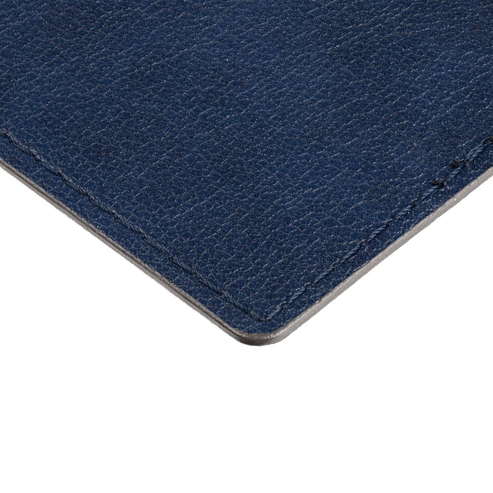 Обложка выполнена из материала Petrus, синий НН. Срез обложки окрашен в серый цвет.