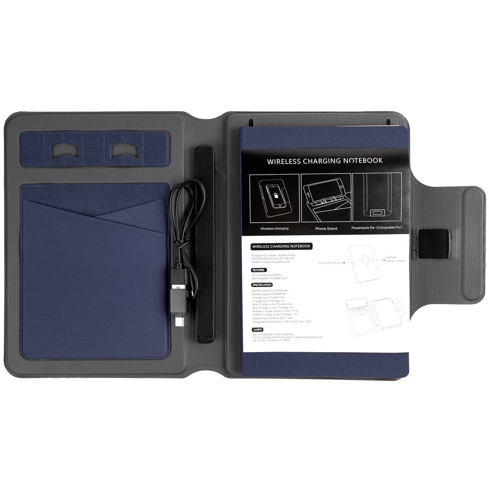 • Органайзер с блокнотом и аккумулятором Oiro, синий