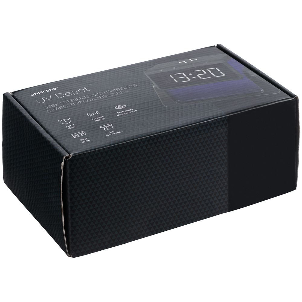 • Настольный стерилизатор с беспроводной зарядкой и часами UV Depot, черный