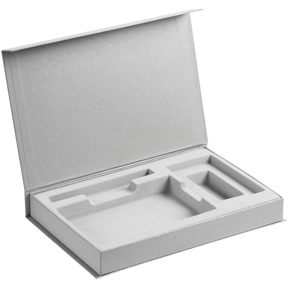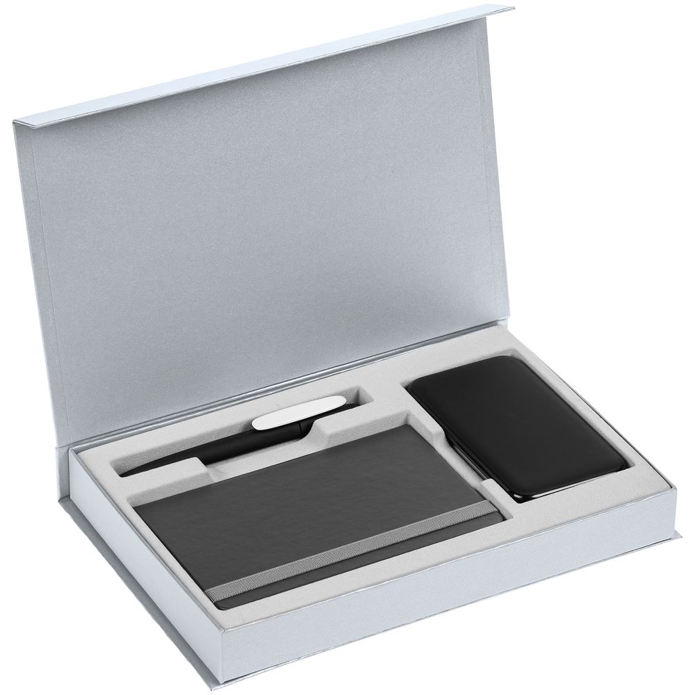 Коробка Silk с ложементом под ежедневник 10x16 см, аккумулятор и ручку, серебристая 812 ₽