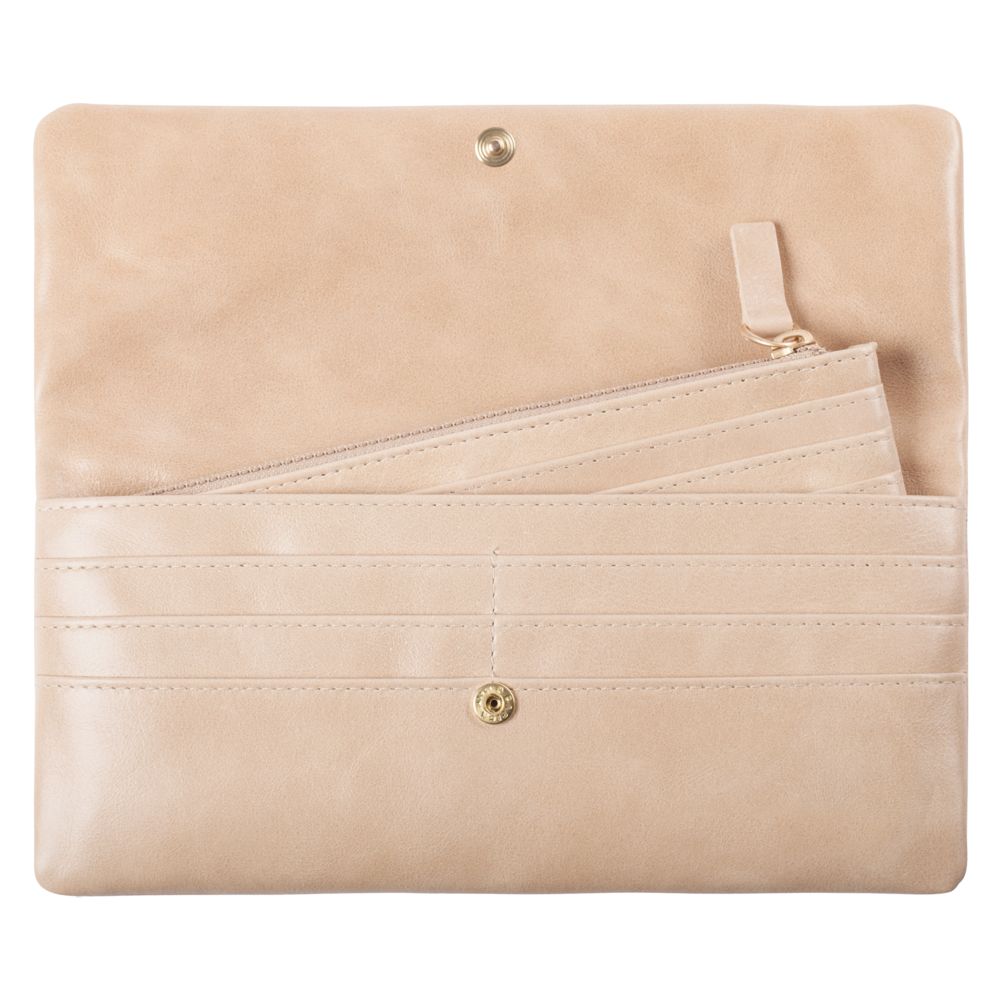Кошелек имеет съемную внутреннюю вставку. На ней расположены карманы для карт и отделение на молнии.