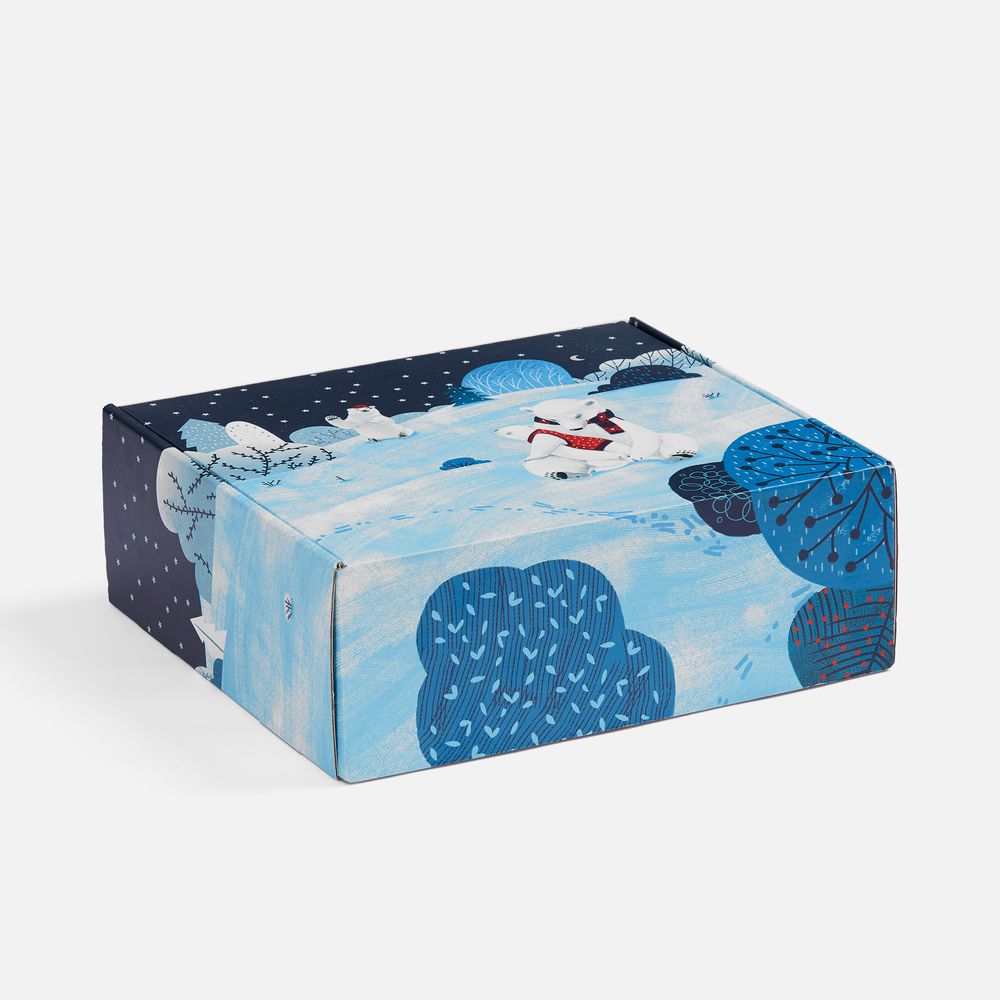 Набор «Праздничный полюс» приглашает окунуться в мир настоящей зимней эстетики и волшебной безмятежности! Это новогодний ансамбль в едином нарядном стиле: мягкий флисовый плед, кружка с тематическим принтом и изящный елочный шарик. Немного сказочные изображения с милыми белыми мишками на подарочной коробке и кружке задают тон всему набору, вызывая радость и улыбку.