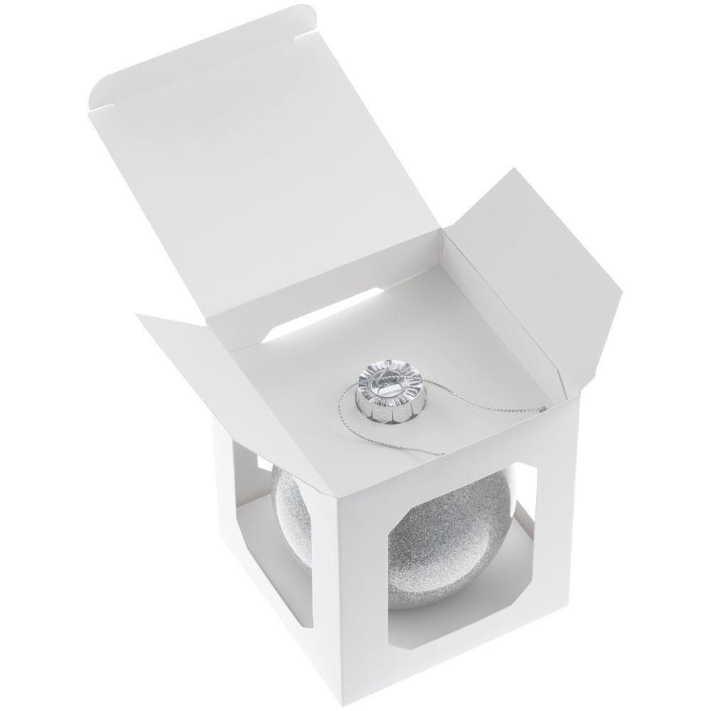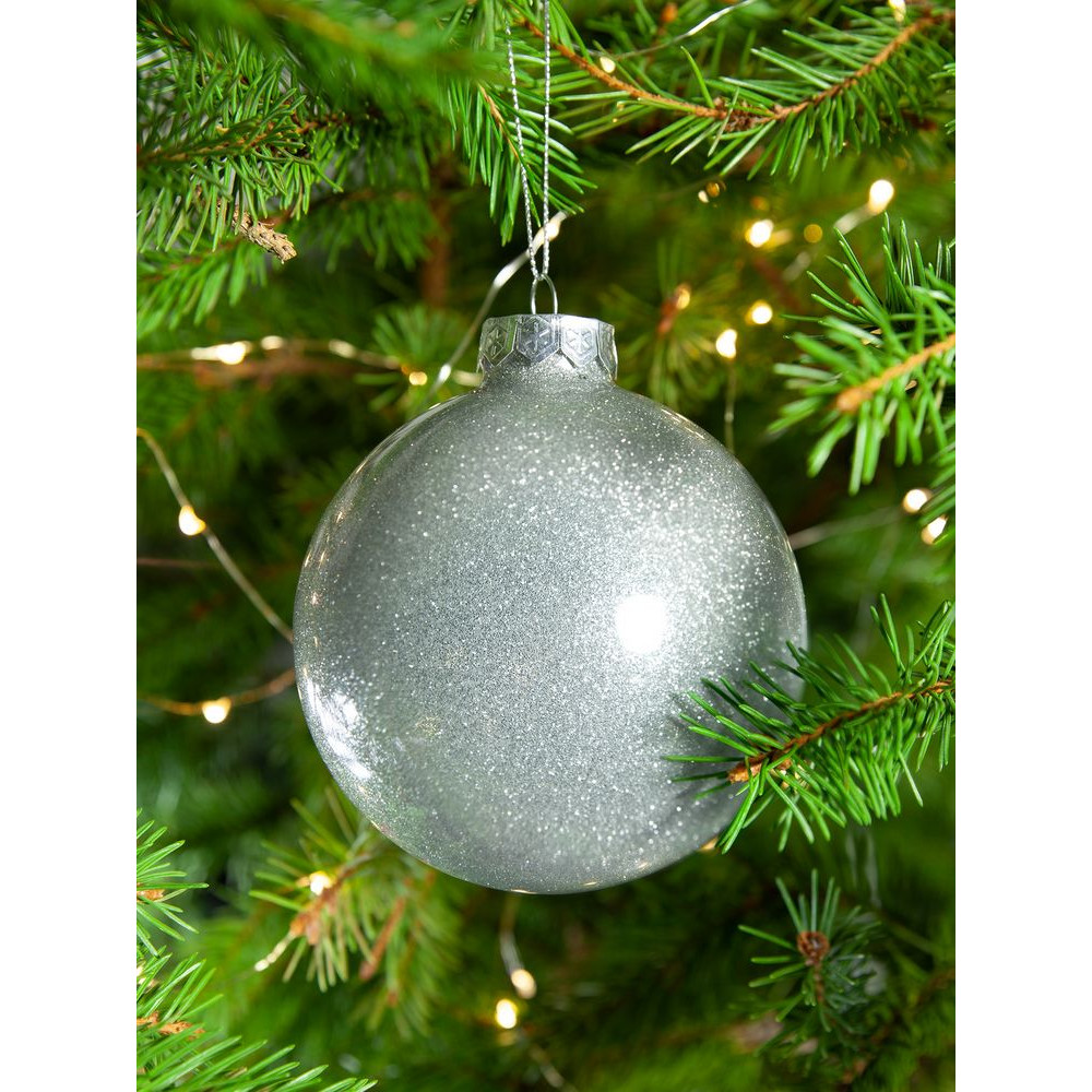 Елочный шар Finery Shine, 10 см, глянцевый серебристый с глиттером