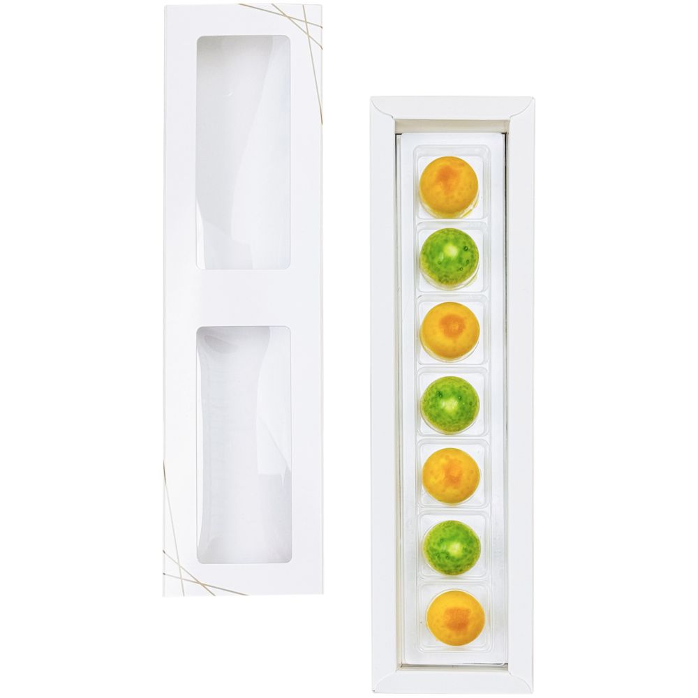 Каждая конфета — это игривое сочетание утонченности белого шоколада и сочной свежести маракуйи.