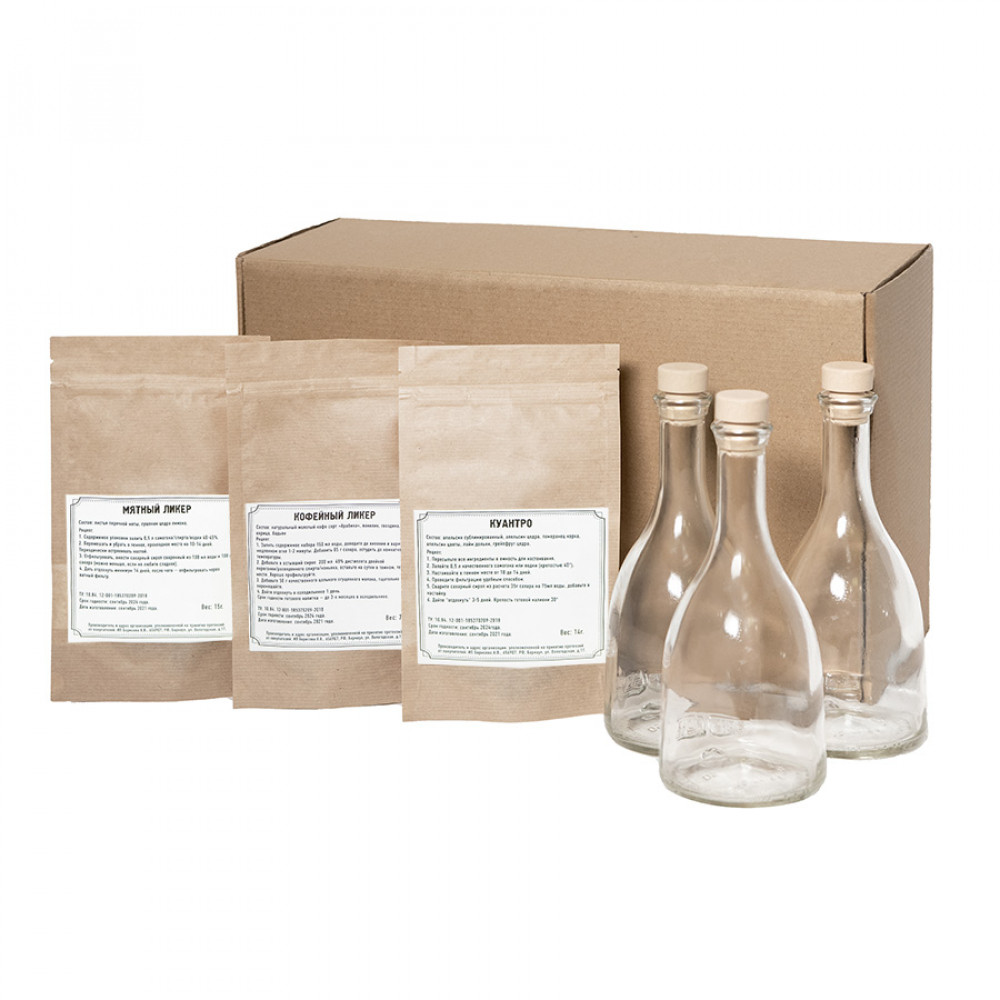 Параметры: Набор для приготовления "Мятного ликёра", "Куантро", "Кофейного ликёра"