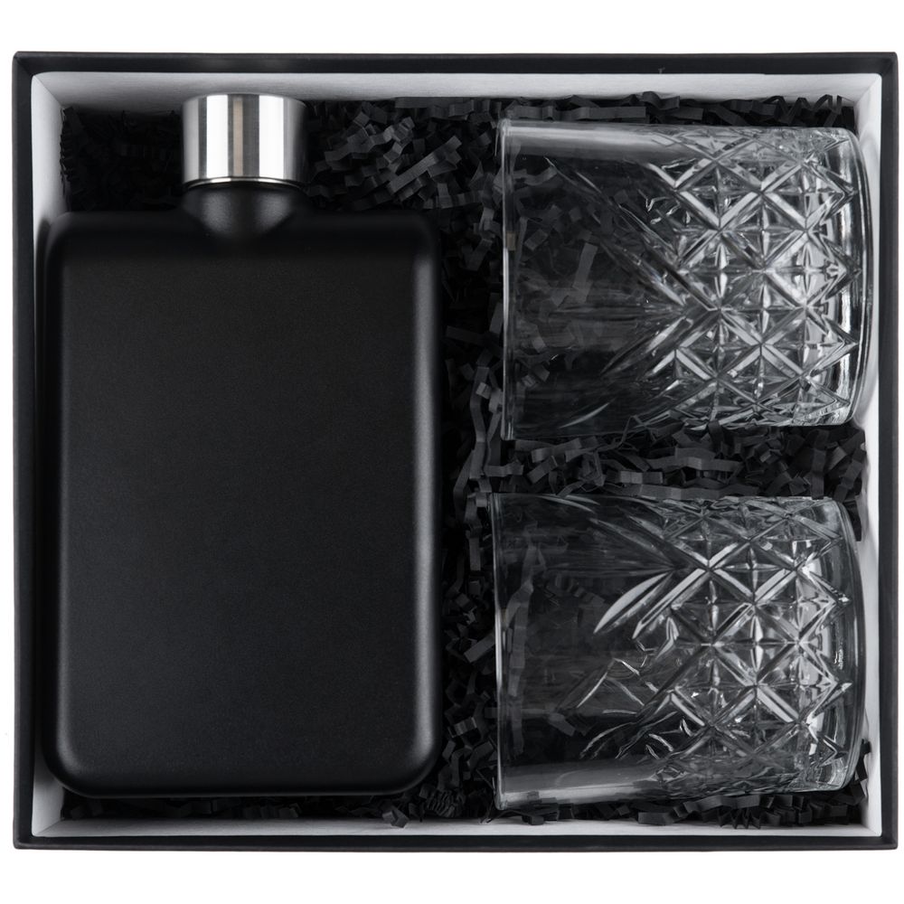 Стильная и практичная фляга вместе с элегантными стаканами станет прекрасным подарком для ценителей такого напитка, как виски. Благодаря матовой поверхности флягу особенно приятно держать в руке. Резной стакан удобной формы позволяет в полной мере насладиться вкусом, цветом и ароматом напитка. Емкость фляги 473 мл.