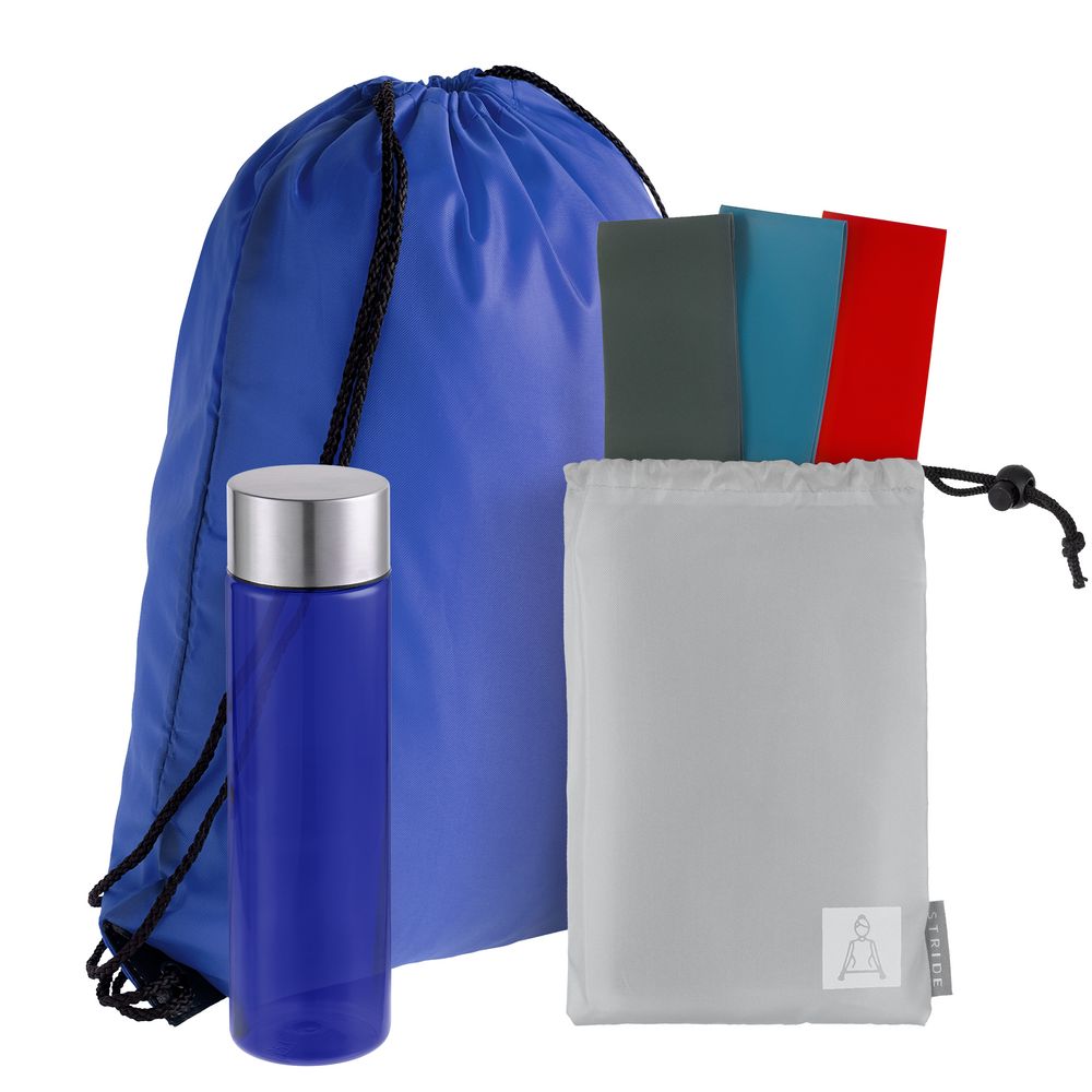 Набор, позволяющий вести действительно активный образ жизни. Не стесняющий движения рюкзак, легкая бутылка для воды и компактные эластичные ленты — занимайтесь спортом где угодно и когда угодно!
