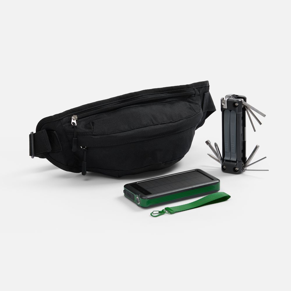 В комплекте набора BikeHike: ударопрочный аккумулятор с фонариком, универсальный мультитул для быстрого ремонта велосипеда или самоката, а также практичная сумка.