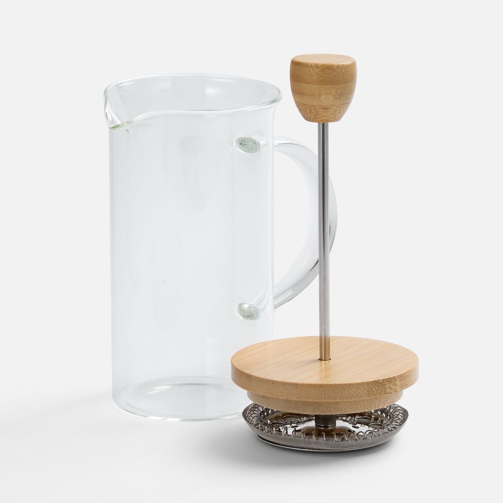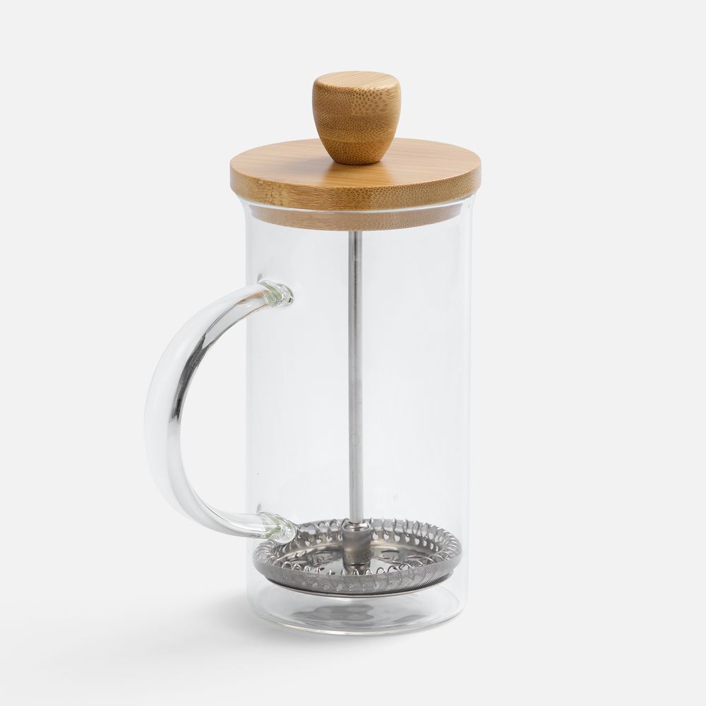 Френч-пресс с изящным сочетанием прозрачного боросиликатного стекла и натурального дерева станет стильным акцентом на кухне.