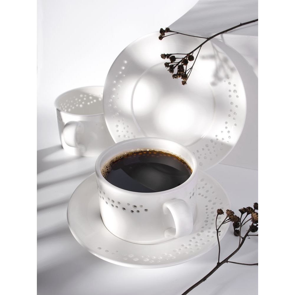 Чайные пары Coralli — легкая, словно светящаяся изнутри посуда с легендарным узором «рисовое зерно». Благодаря тонкому слою прозрачной глазури кружка выглядит кружевной и ажурной, при этом напиток гарантированно остается внутри.