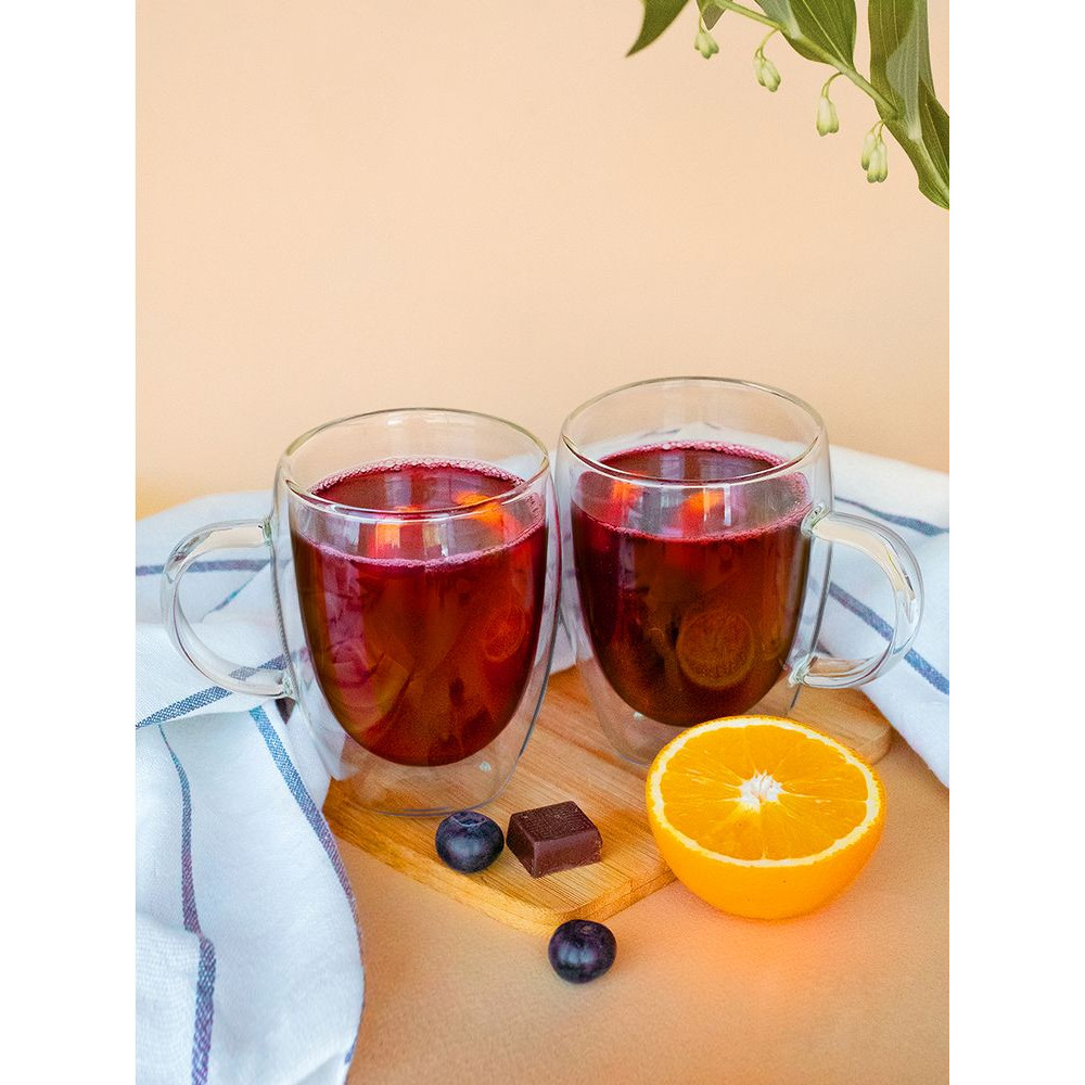 Кружки выполнены из боросиликатного стекла и предназначены для подачи холодных и горячих напитков. Стенки кружек не нагреваются, обеспечивая комфорт и безопасность использования.В наборе 2 кружки. Емкость 300 мл.