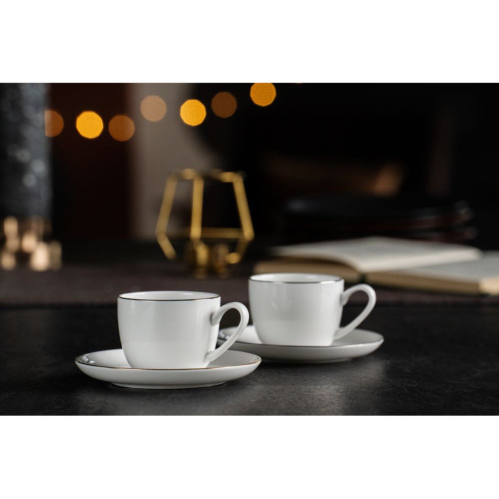 С кофейной парой Mansion Select легко почувствовать себя особенным. Кофейная пара обращает на себя внимание тонкой отводкой с металлическим блеском по краю предметов и изящной формой, а подарочная упаковка делает этот комплект роскошным подарком.
