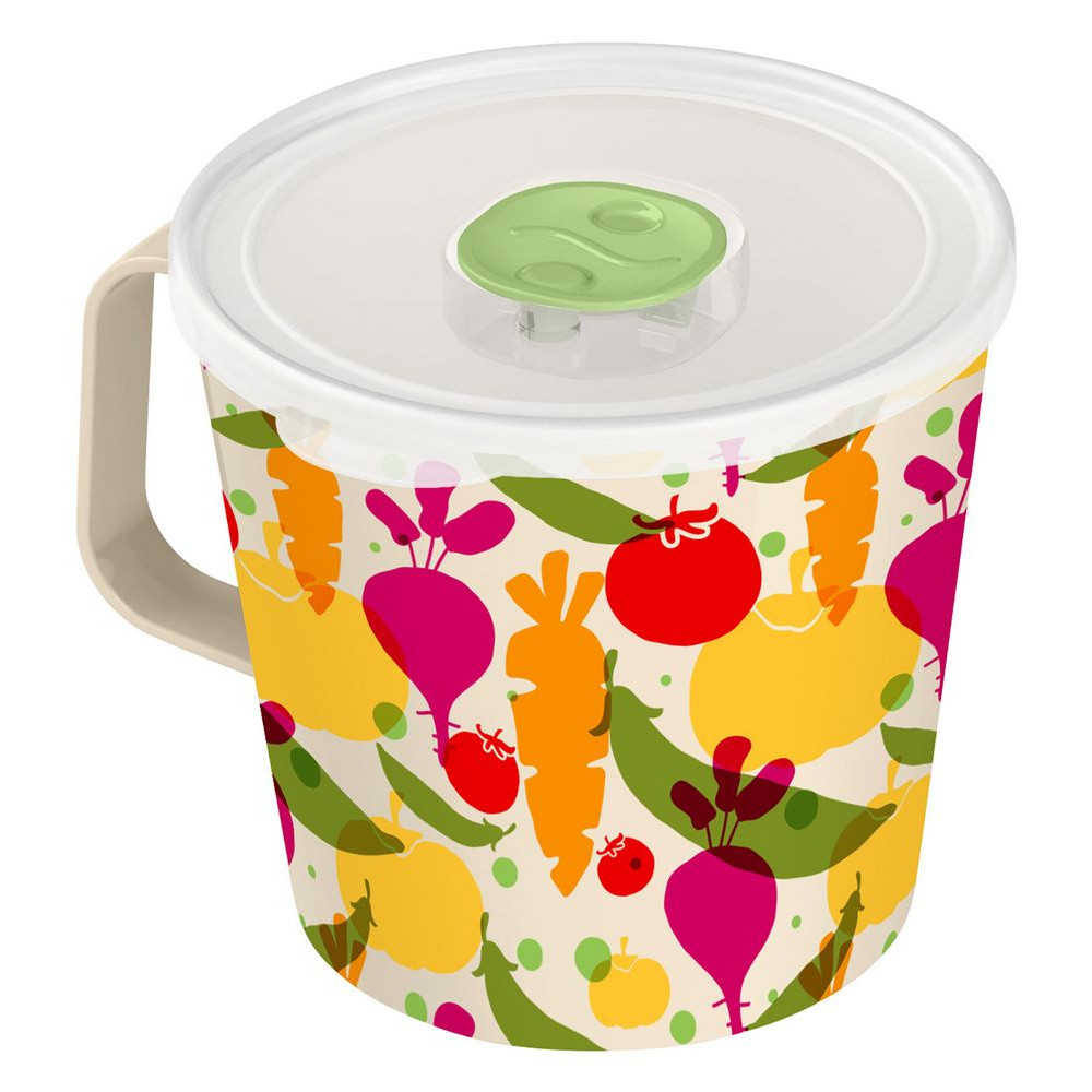 Вместительный контейнер в форме кружки подойдет для хранения продуктов и блюд. Благодаря легкому небьющемуся материалу и хваткой ручке им особенно удобно пользоваться в дороге.