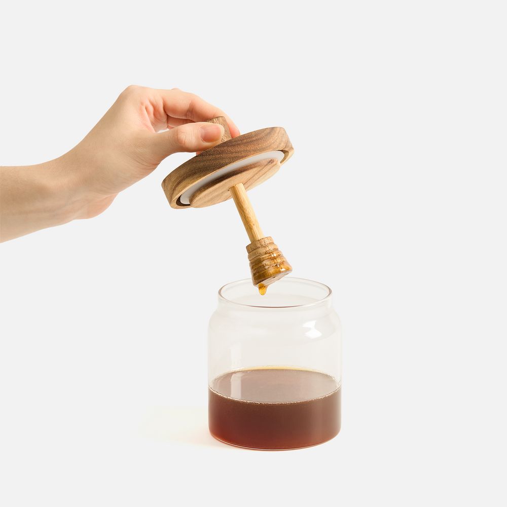 Классическая банка для меда Colmena с ложкой-веретеном станет идеальным подарком для ценителей натуральных продуктов и любителей меда.