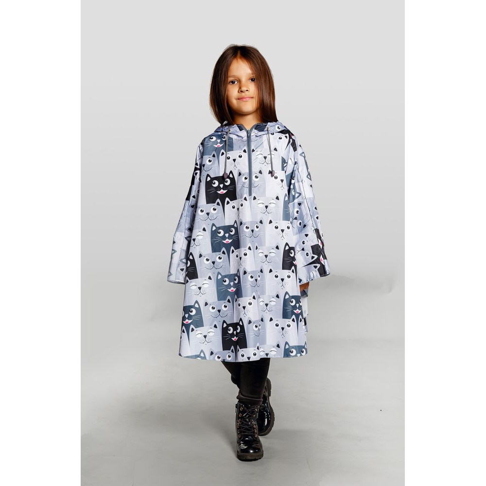 Легкий городской дождевик-пончо с регулируемым капюшоном из влагоустойчивого материала подходит для защиты в непогоду, свободно одевается поверх одежды и небольшого рюкзака.