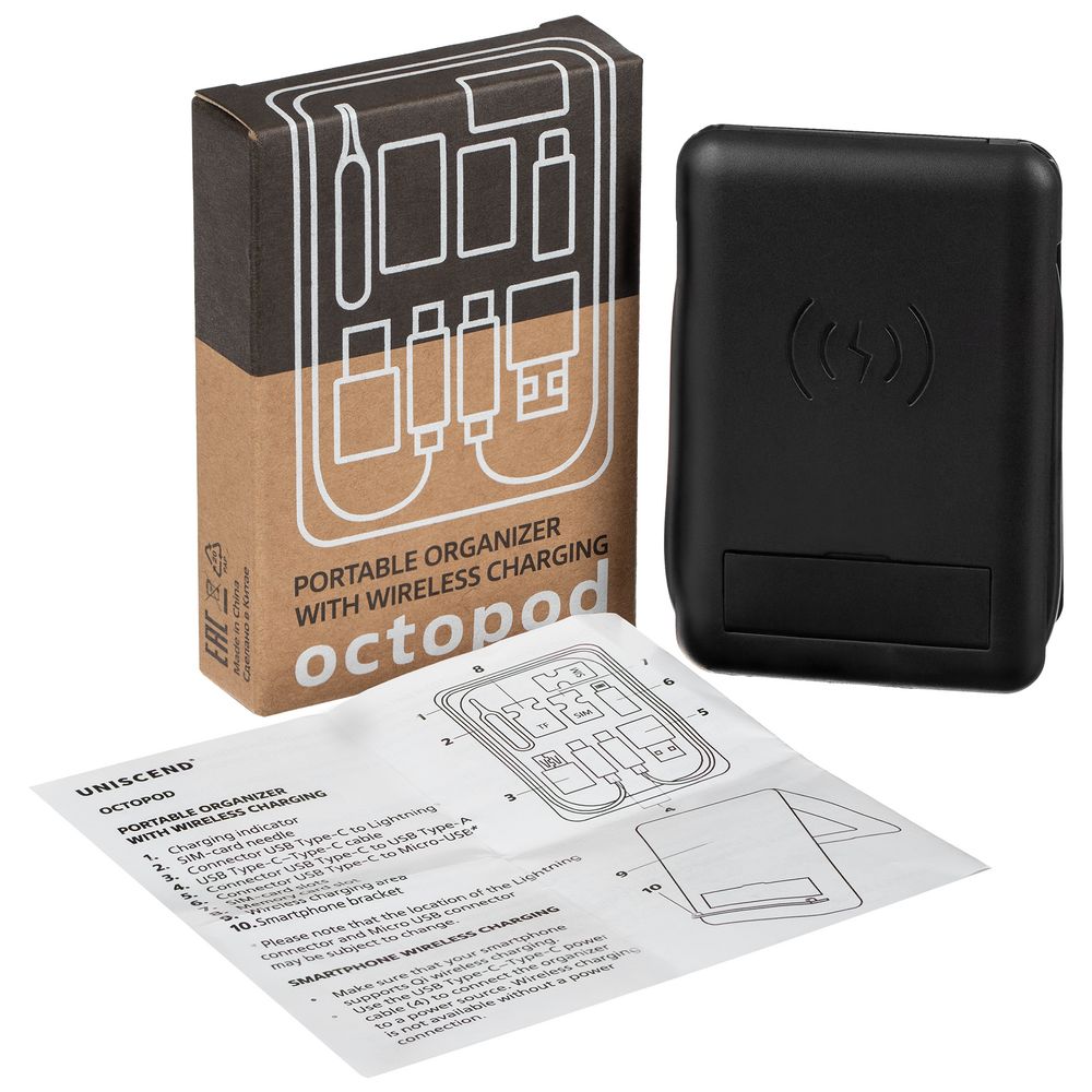 Органайзер с беспроводной зарядкой и набором адаптеров Octopod, черный 1290 ₽