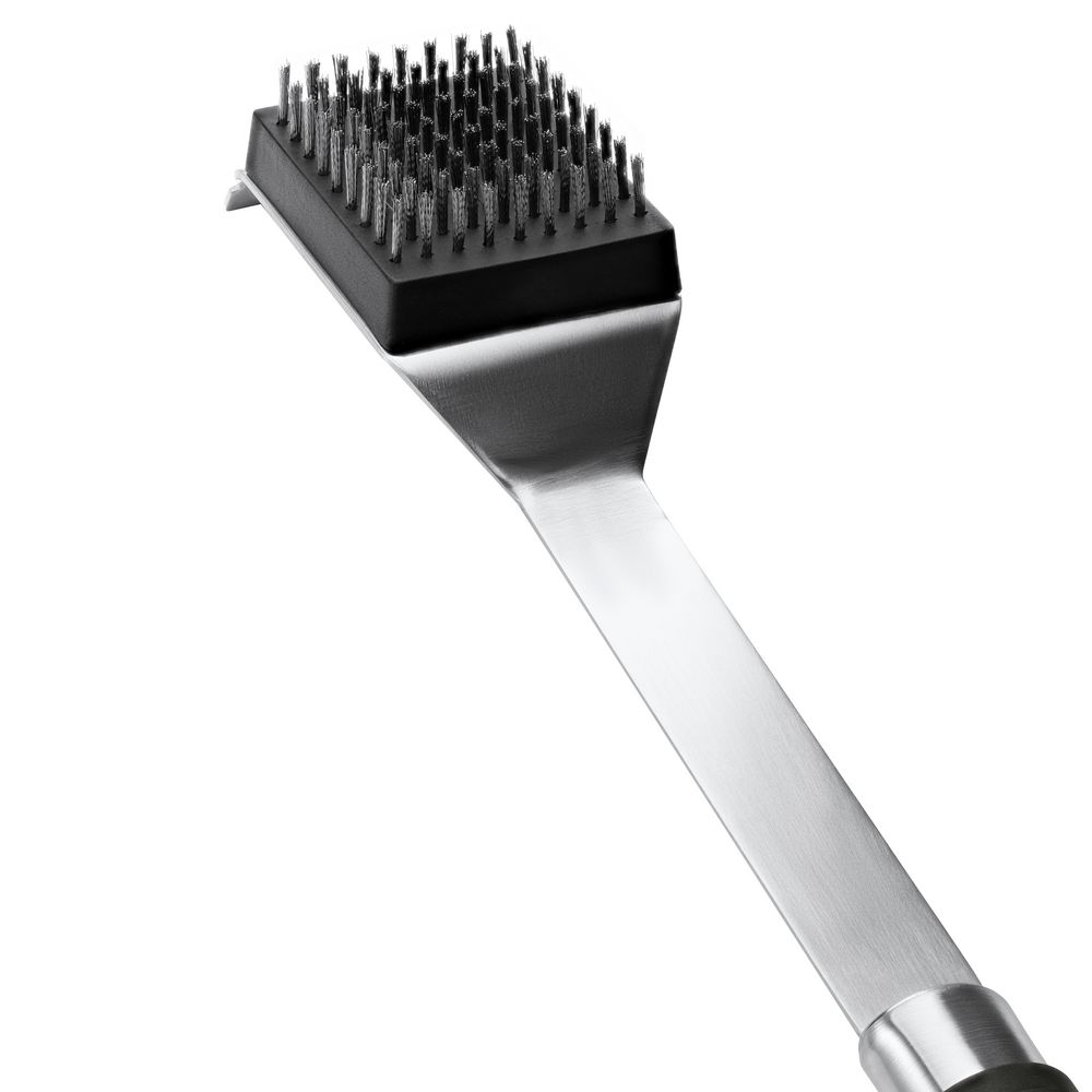 Щетка Ribeye благодаря жесткой металлической щетине быстро и эффективно очистит решетку для гриля от остатков пищи и нагара. Имеет оптимальную длину для безопасного использования, рукоятку с противоскользящим покрытием и петлю для подвешивания.