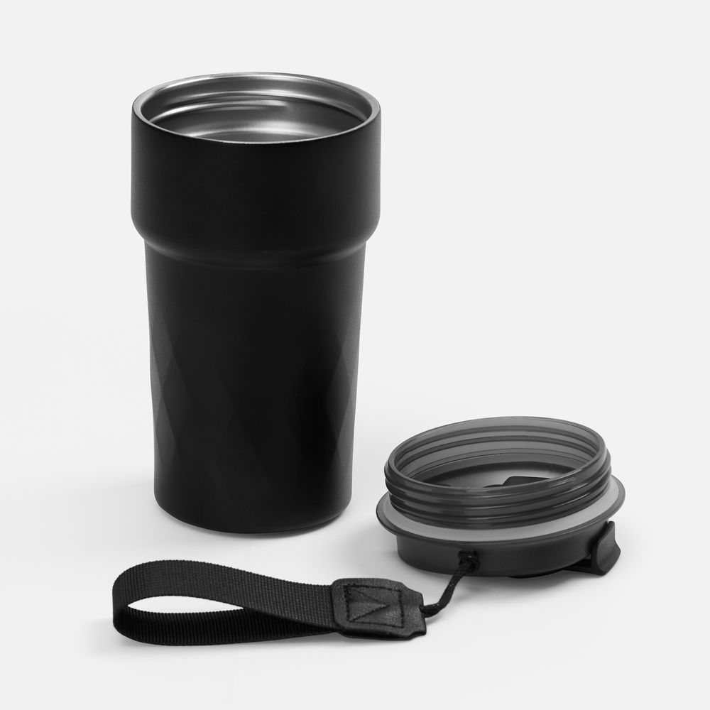 Смарт-термостакан в металлическом корпусе с легким рельефом.