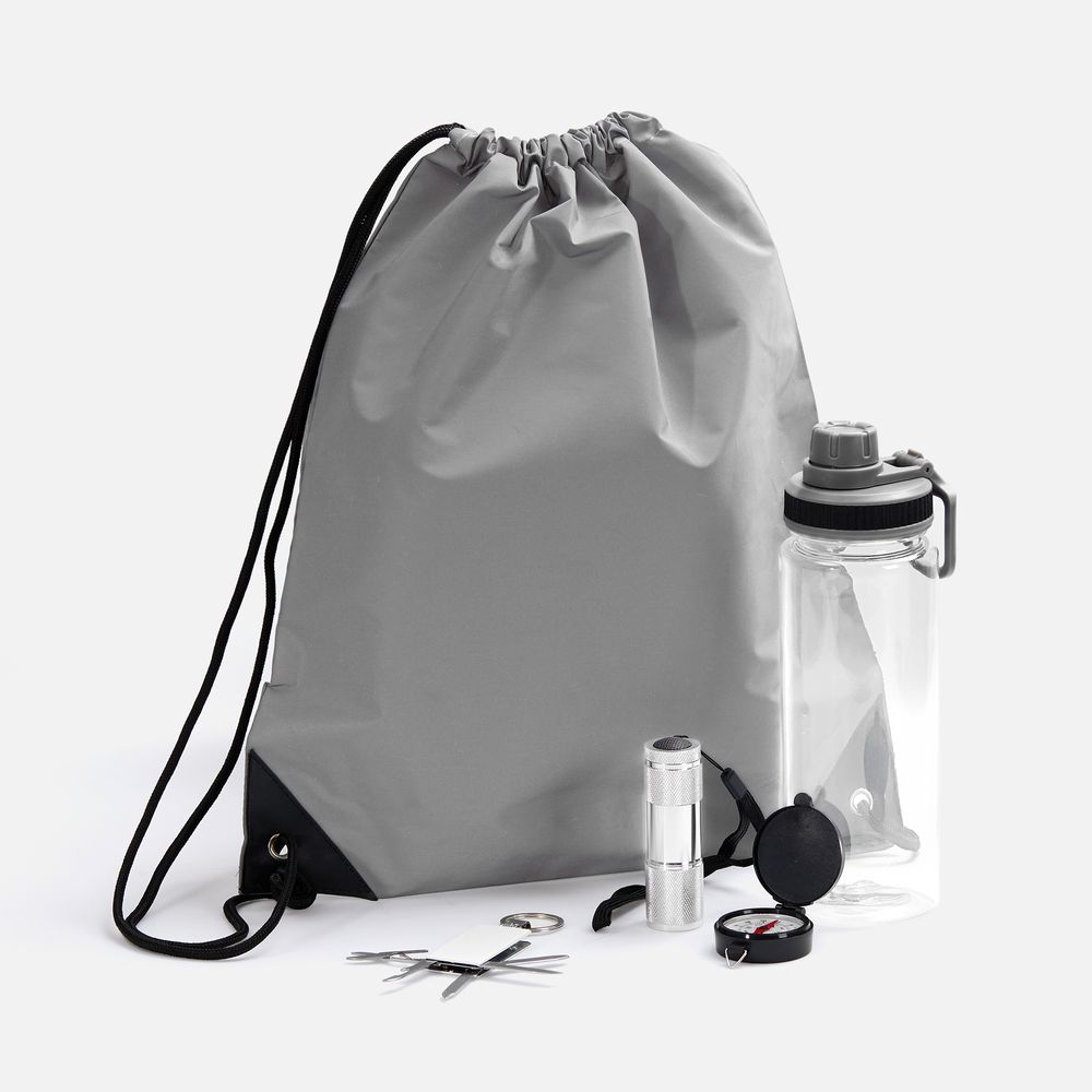 Набор Manifestour — практически survival kit для вылазки на природу! Входящие в состав брелок-мультитул, компас, бутылка для воды и фонарик — незаменимые вещи в любом путешествии, а благодаря рюкзаку из светоотражающей ткани вас будет легко заметить в темное время суток.