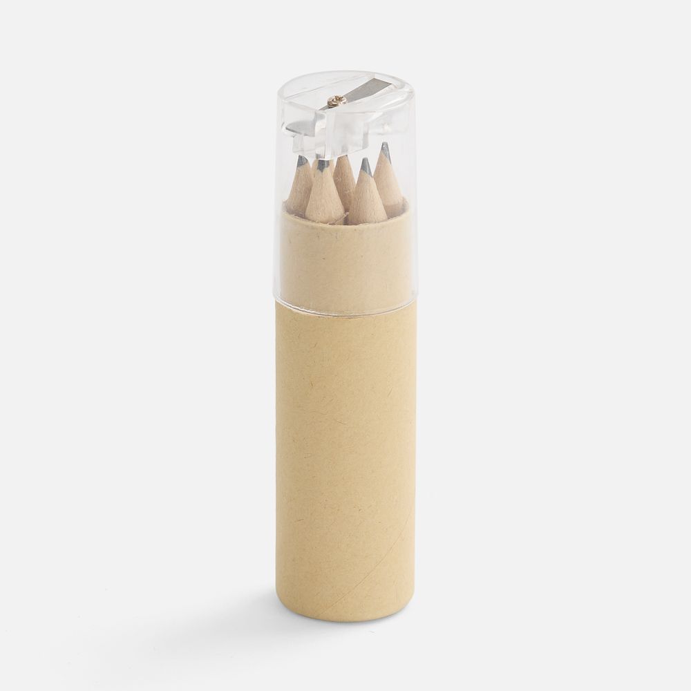 В комплекте: 6 заточенных простых карандашей HB, пенал с точилкой.