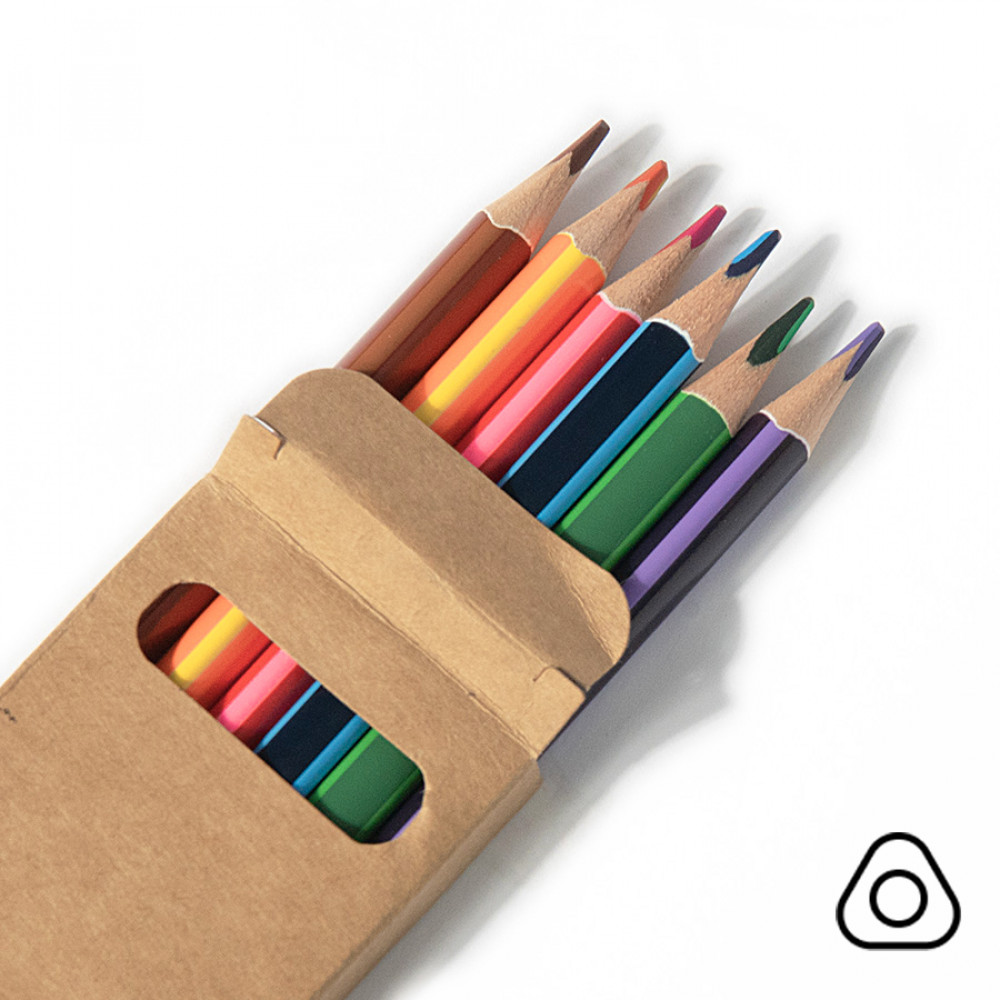 Набор 6 цветных карандашей. Упаковка крафт с вырубкой. Корпус из высококачественной древесины. Двойная проклейка грифеля. Грифель категории А, 3,0 мм. Многослойная прокраска трехгранного корпуса. Уникальность данного набора в том, что карандашей в нем 6, а цветов 12.