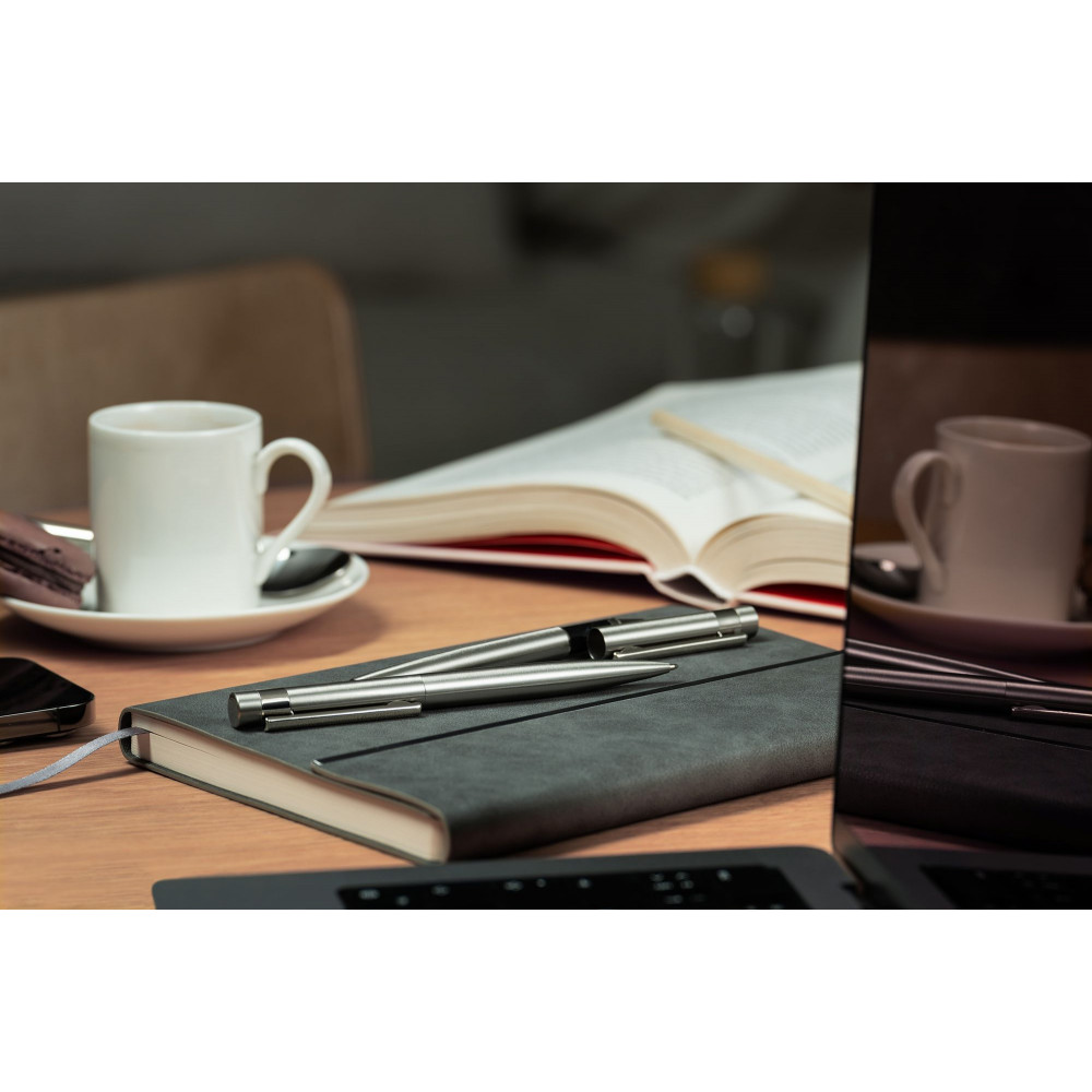 Ручка и роллер Platero из переработанной вторичной стали в изящном матовом корпусе — вклад в экологию и сокращение углеродного следа. Уверенность в себе и в будущем.